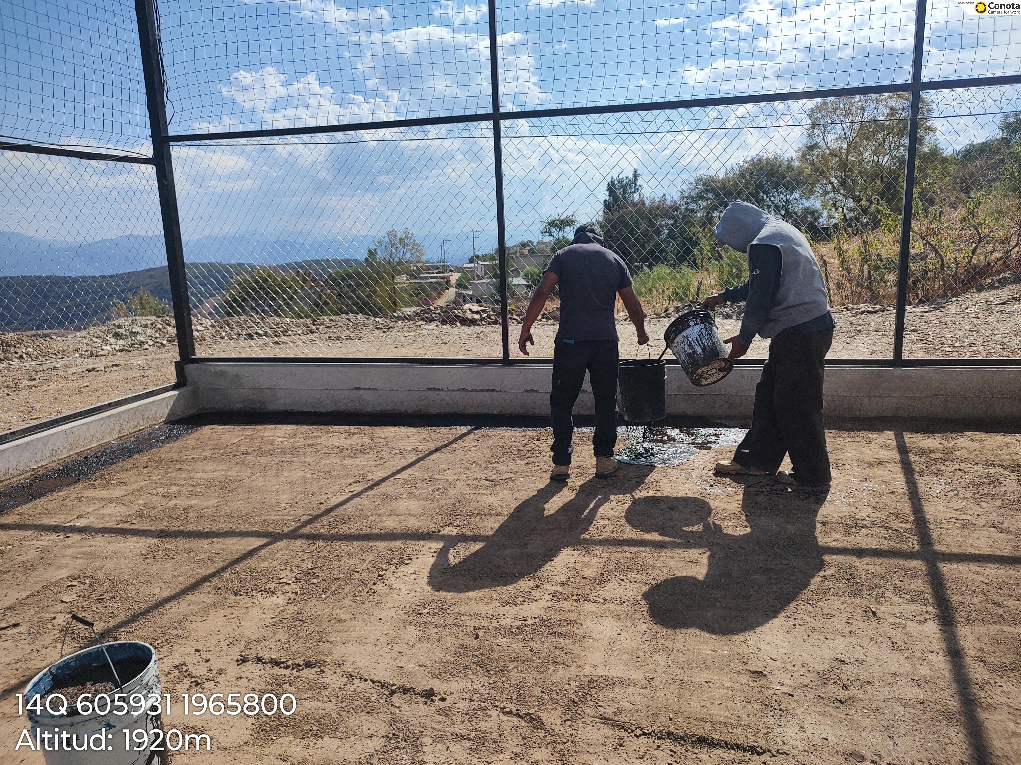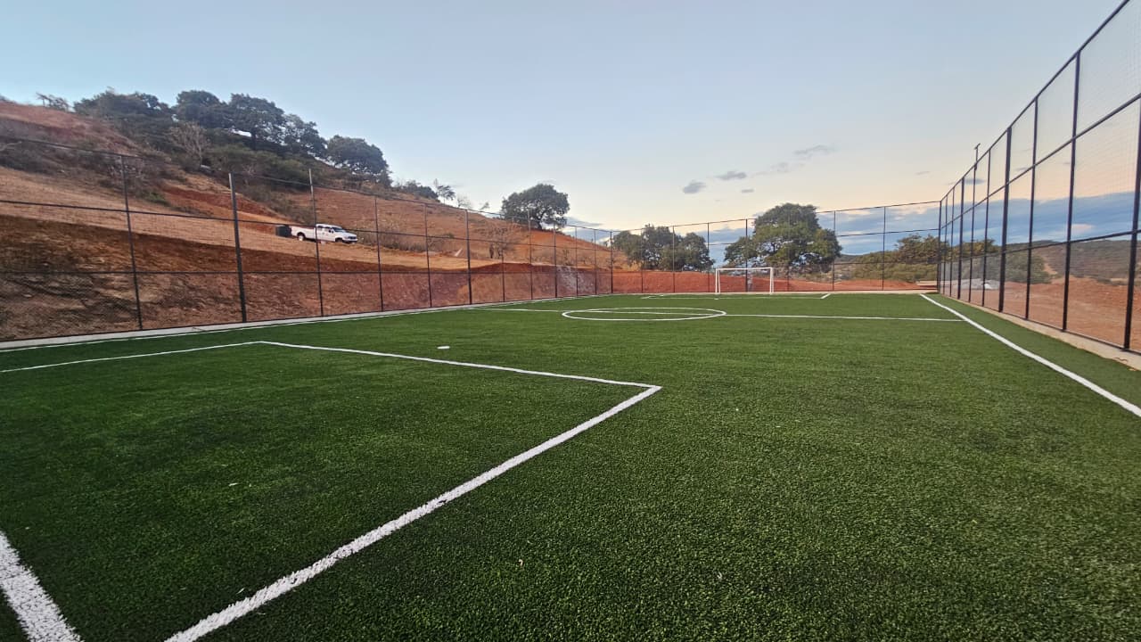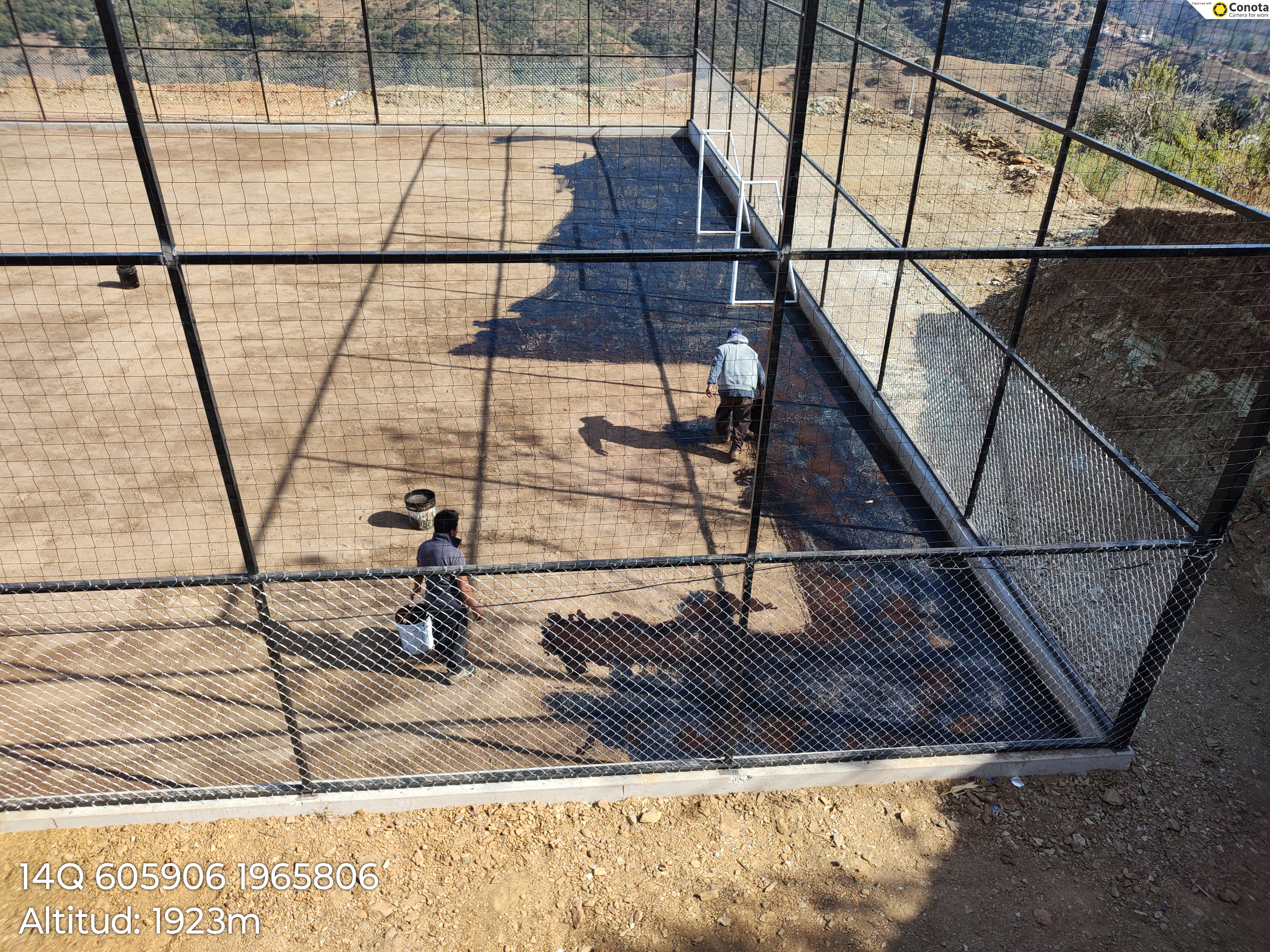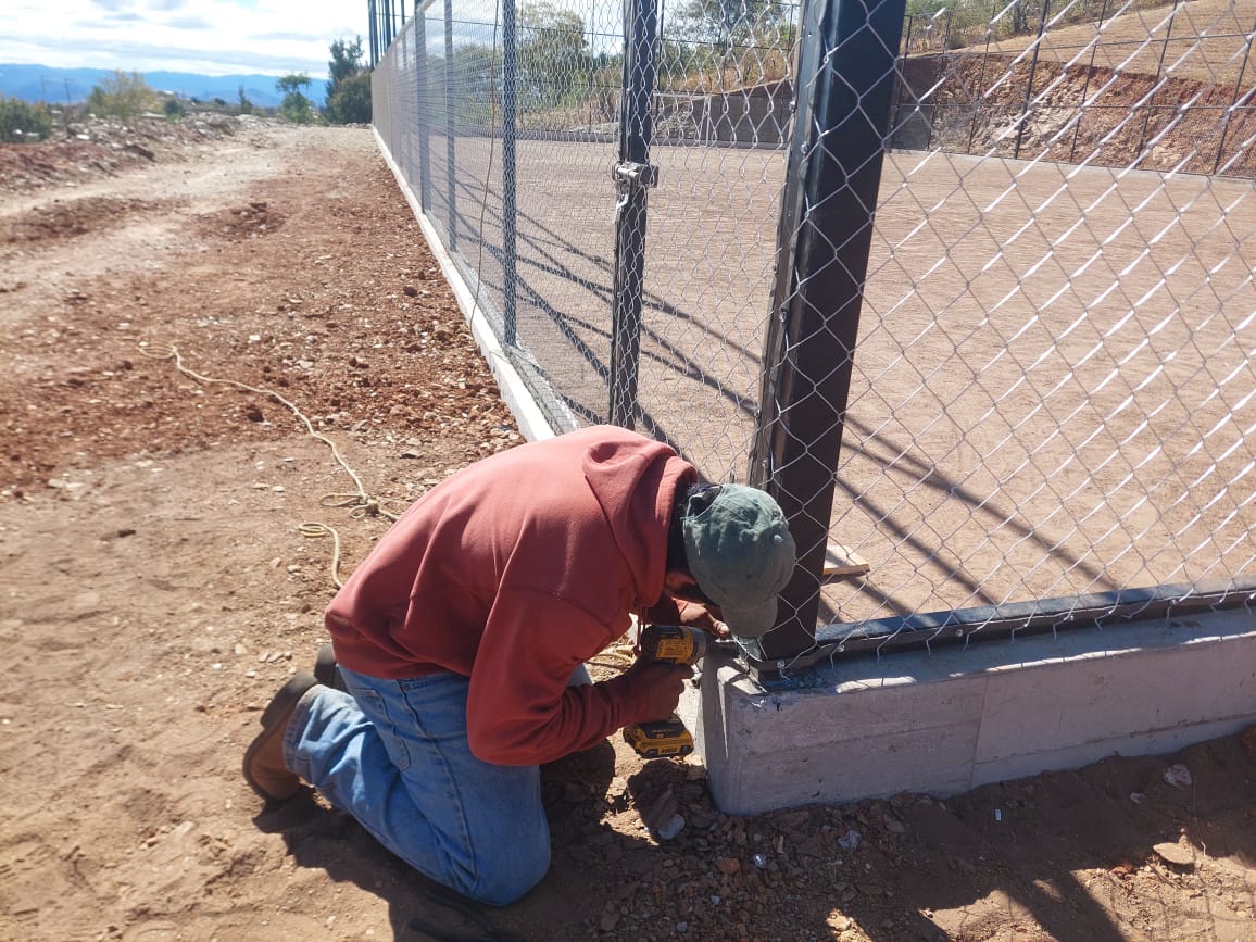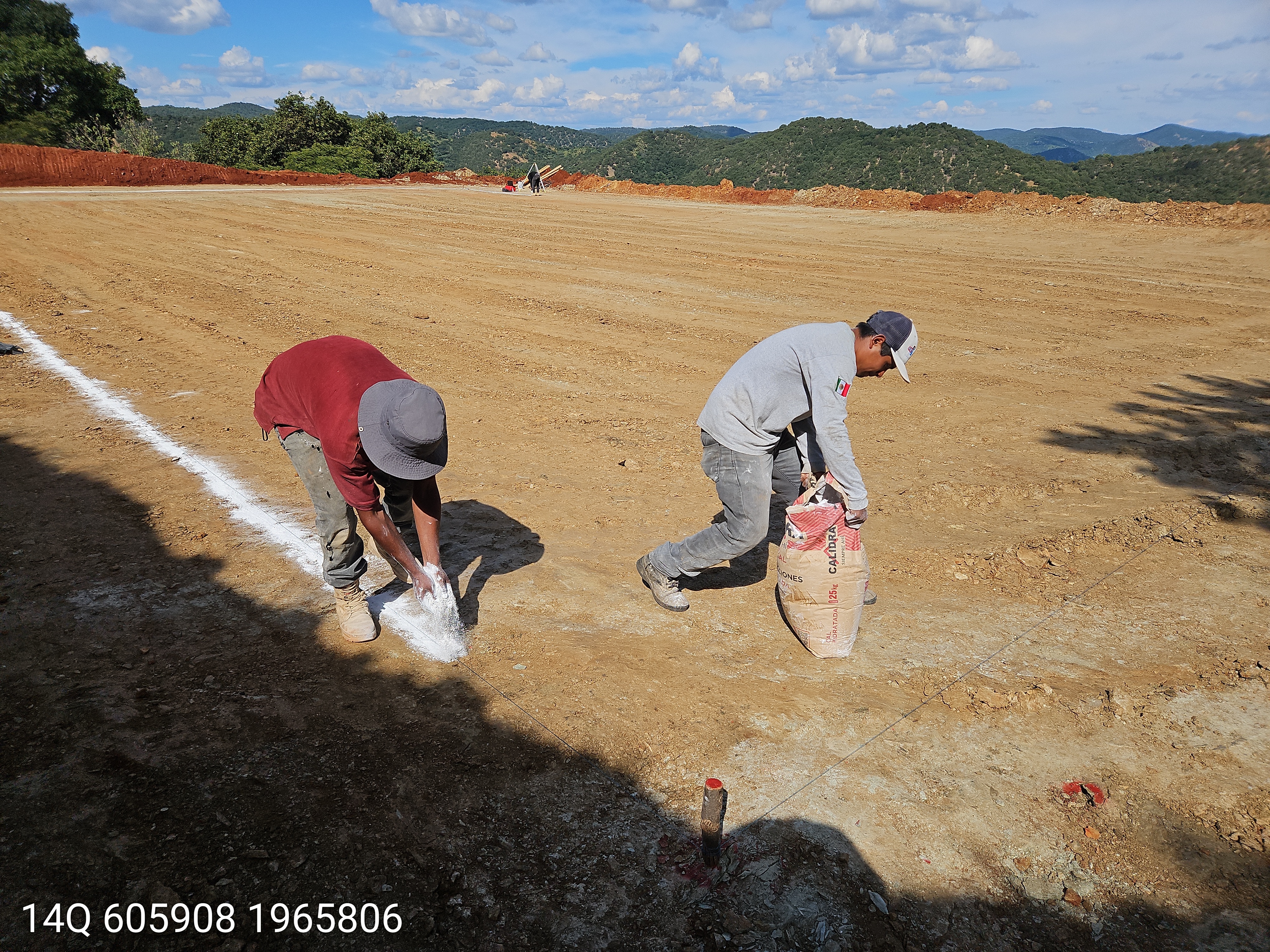 TRAZO Y NIVELACIÓN DE 1,426 M2 PARA ESTABLECER EJES, BANCO DE NIVEL Y REFERENCIAS DE PLATAFORMA; CORTE DE 684.11 M3 DE TERRENO CON MAQUINARIA Y FORMACIÓN DE 611.65 M3 DE TERRAPLÉN CON MATERIAL PRODUCTO DEL CORTE, COMPACTADO CON MAQUINARIA; CONSTRUCCIÓN DE 40 DADOS DE CONCRETO ARMADO PARA CIMENTACIÓN DE ESTRUCTURA METÁLICA Y CONSTRUCCIÓN DE 128.80 ML DE CADENA DE FRONTERA, A BASE DE CONCRETO DE F'C= 250 KG/CM2 Y ACERO DEL #3 Y EST DEL #2; SUMINISTRO Y COLOCACIÓN DE CERCO DE HERRERÍA PARA DELIMITACIÓN DE CANCHA DE FUTBOL, A BASE DE PERFILES PTR DE 4"X4" Y 2"X 2"; SUMINISTRO E INSTALACIÓN DE PUERTA DE MALLA CICLÓNICA DE 0.90 M DE ANCHO POR 2.00M DE ALTURA; SUMINISTRO Y COLOCACIÓN DE 128 ML DE MALLA CICLÓNICA DE 2.00 M. DE ALTURA; SUMINISTRO Y COLOCACIÓN DE 2 PORTERÍAS METÁLICA A BASE DE TUBO CED 30 DE 2" Y 3"; SUMINISTRO Y COLOCACIÓN DE 384 M2 DE RED PERIMETRAL DE 3 PULGADAS DE NYLON ALQUITRANADA; Y SUMINISTRO E INSTALACIÓN DE 960 M2 DE PASTO SINTÉTICO TERZA. INCLUYE MANO DE OBRA EN INSTALACIÓN DE PASTO, ARENA SÍLICA, CAUCHO GRANULADO.