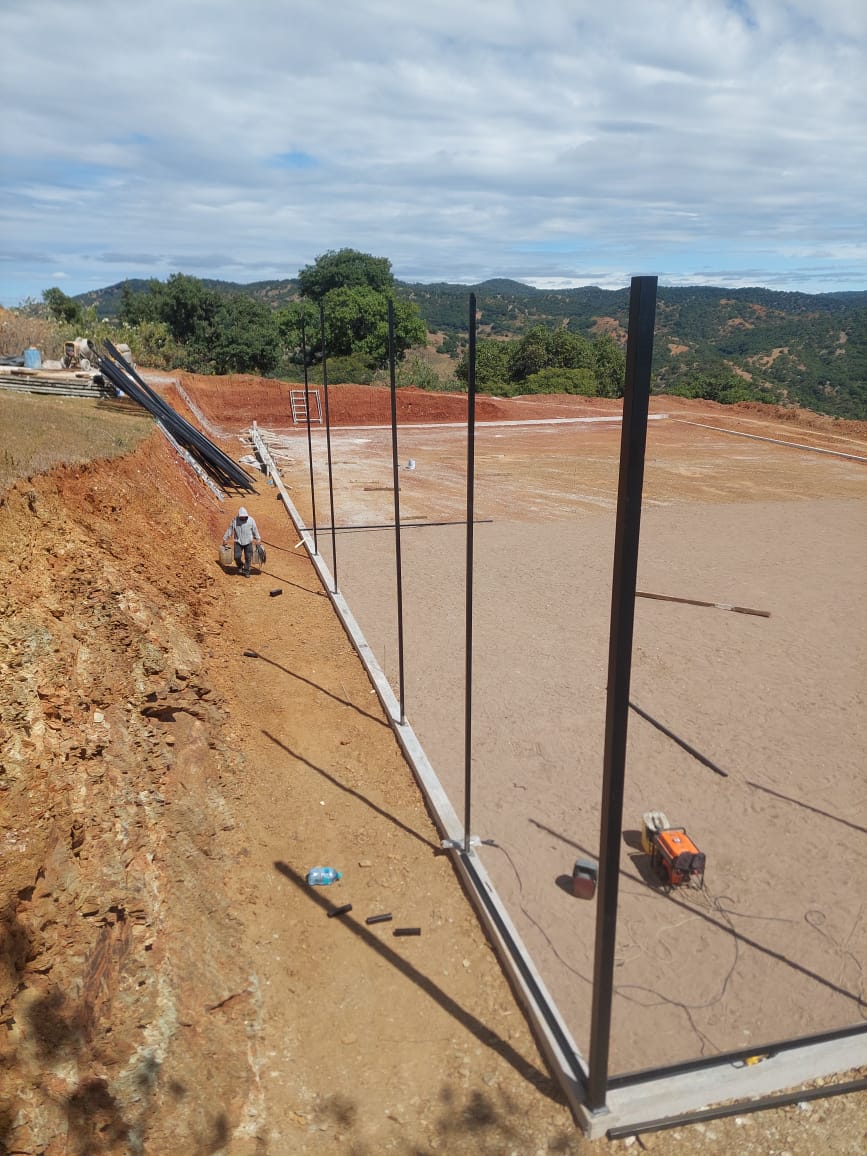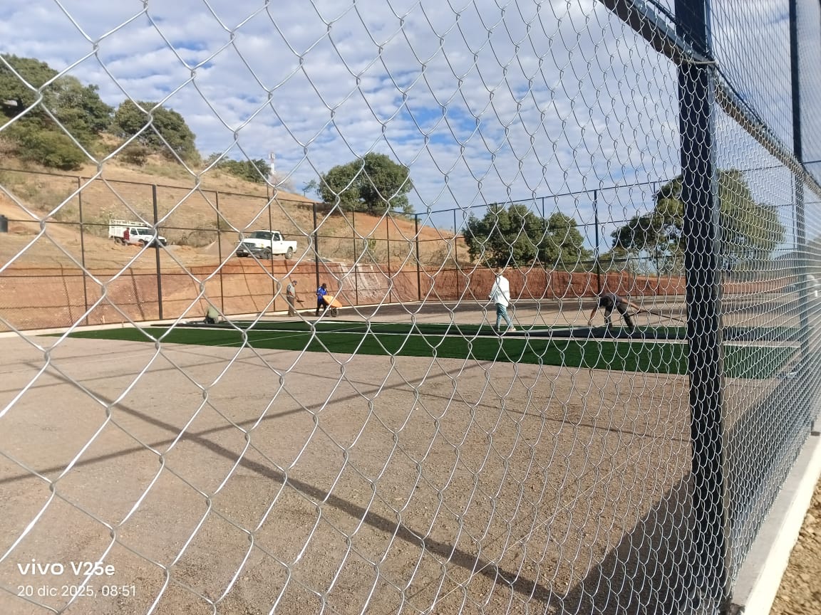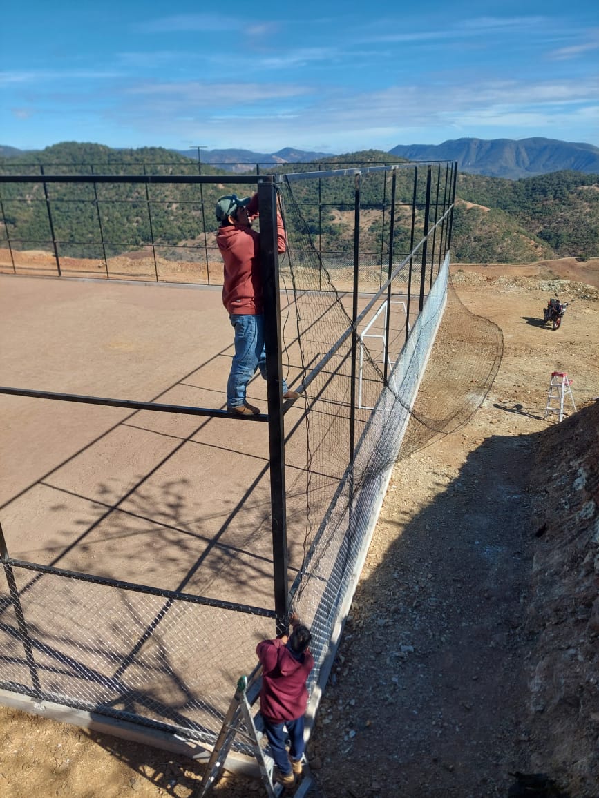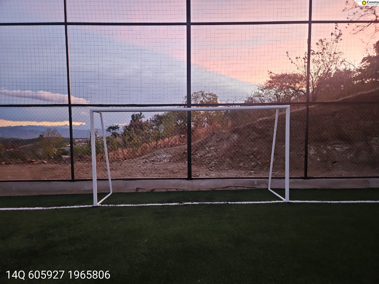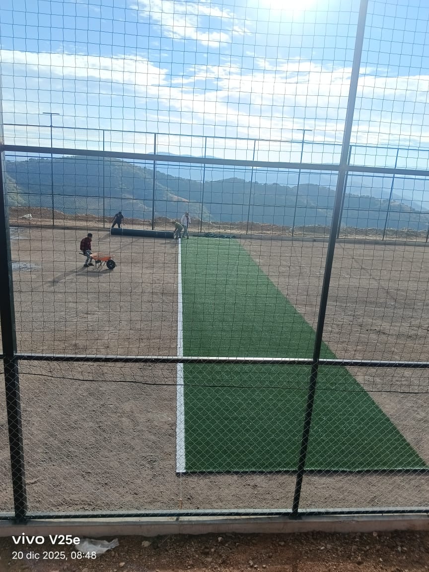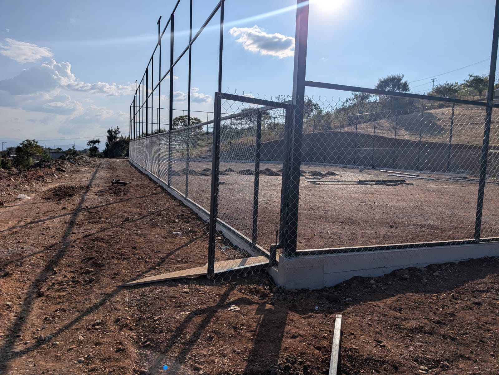 TRAZO Y NIVELACIÓN DE 1,426 M2 PARA ESTABLECER EJES, BANCO DE NIVEL Y REFERENCIAS DE PLATAFORMA; CORTE DE 684.11 M3 DE TERRENO CON MAQUINARIA Y FORMACIÓN DE 611.65 M3 DE TERRAPLÉN CON MATERIAL PRODUCTO DEL CORTE, COMPACTADO CON MAQUINARIA; CONSTRUCCIÓN DE 40 DADOS DE CONCRETO ARMADO PARA CIMENTACIÓN DE ESTRUCTURA METÁLICA Y CONSTRUCCIÓN DE 128.80 ML DE CADENA DE FRONTERA, A BASE DE CONCRETO DE F'C= 250 KG/CM2 Y ACERO DEL #3 Y EST DEL #2; SUMINISTRO Y COLOCACIÓN DE CERCO DE HERRERÍA PARA DELIMITACIÓN DE CANCHA DE FUTBOL, A BASE DE PERFILES PTR DE 4"X4" Y 2"X 2"; SUMINISTRO E INSTALACIÓN DE PUERTA DE MALLA CICLÓNICA DE 0.90 M DE ANCHO POR 2.00M DE ALTURA; SUMINISTRO Y COLOCACIÓN DE 128 ML DE MALLA CICLÓNICA DE 2.00 M. DE ALTURA; SUMINISTRO Y COLOCACIÓN DE 2 PORTERÍAS METÁLICA A BASE DE TUBO CED 30 DE 2" Y 3"; SUMINISTRO Y COLOCACIÓN DE 384 M2 DE RED PERIMETRAL DE 3 PULGADAS DE NYLON ALQUITRANADA; Y SUMINISTRO E INSTALACIÓN DE 960 M2 DE PASTO SINTÉTICO TERZA. INCLUYE MANO DE OBRA EN INSTALACIÓN DE PASTO, ARENA SÍLICA, CAUCHO GRANULADO.