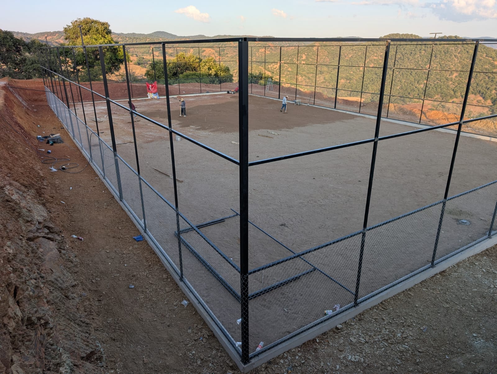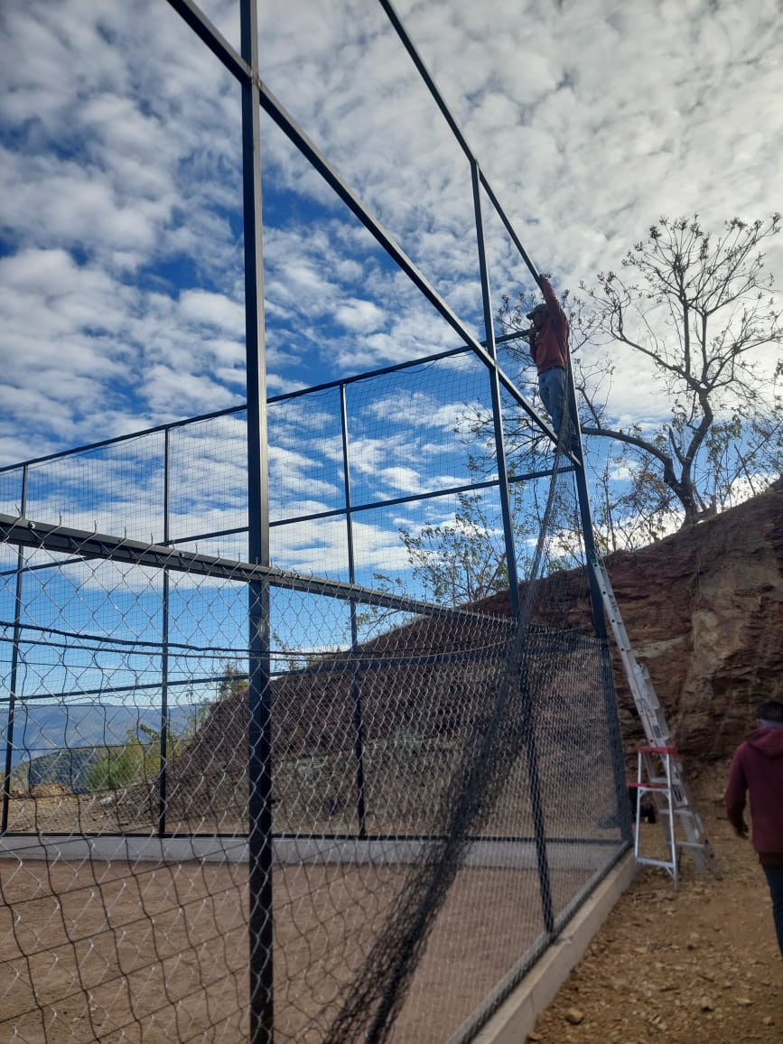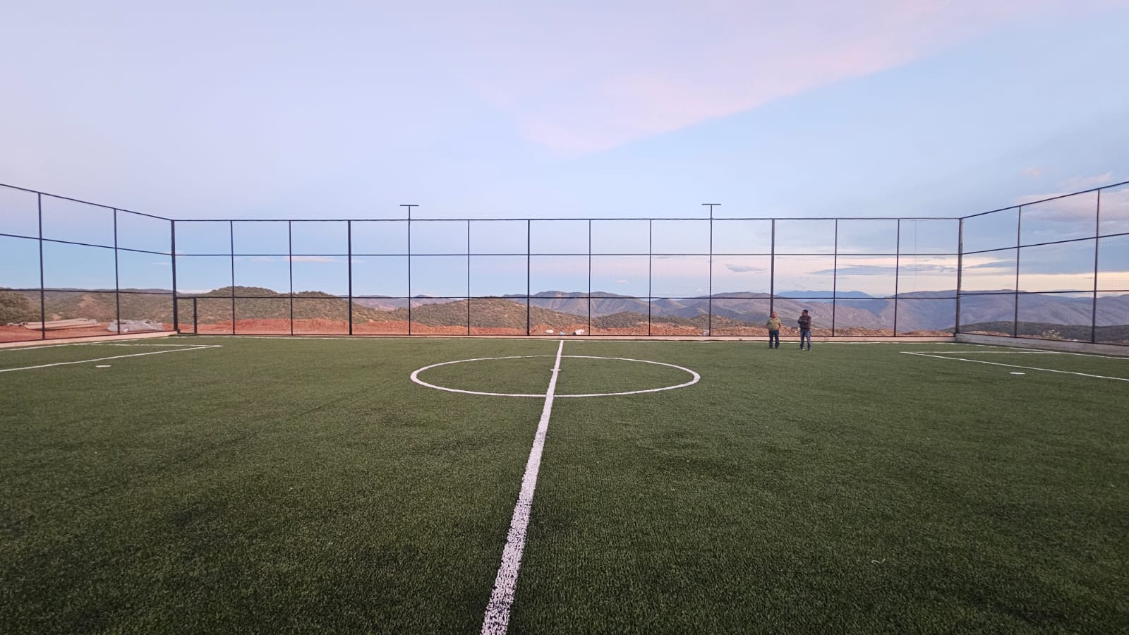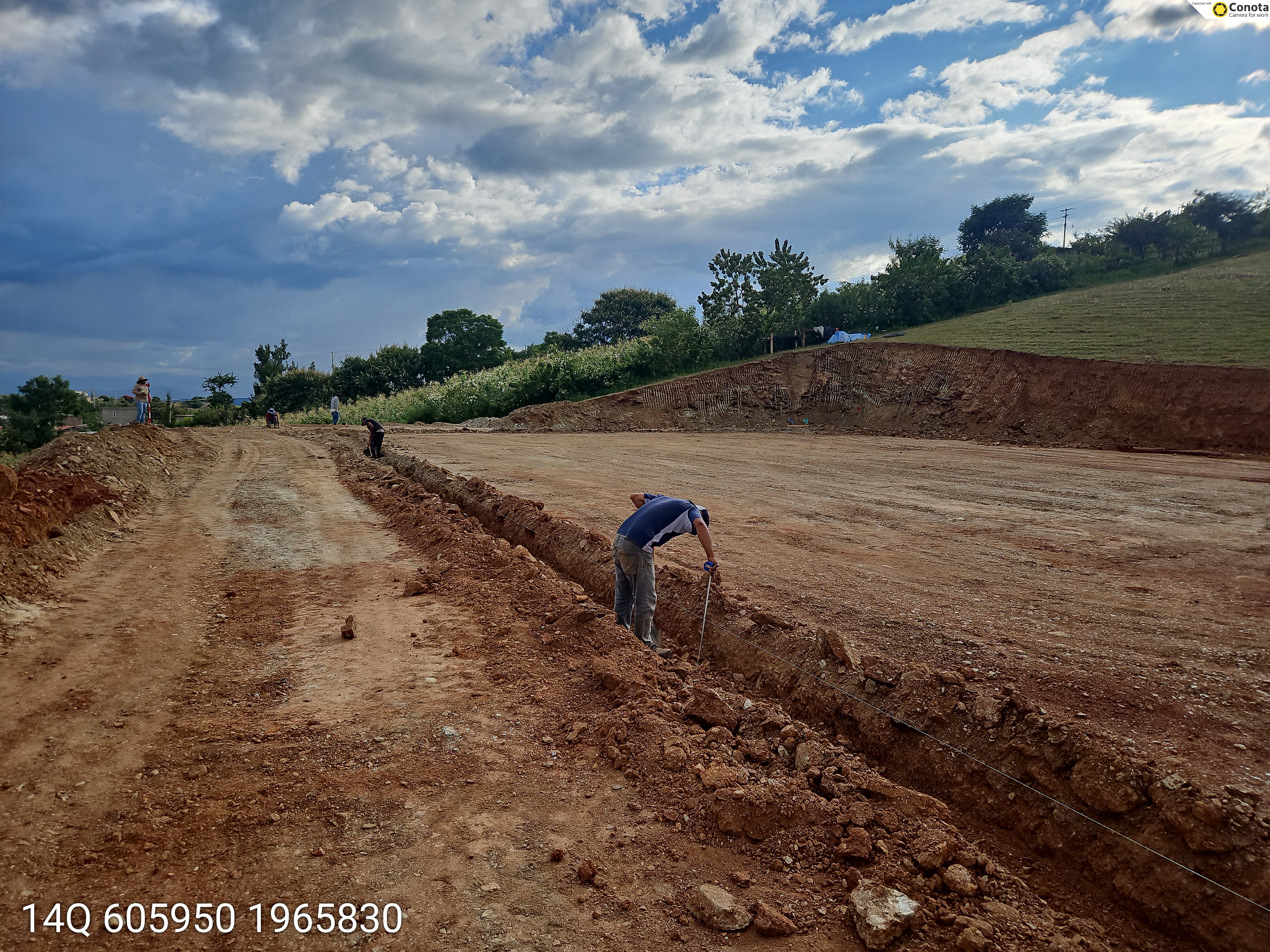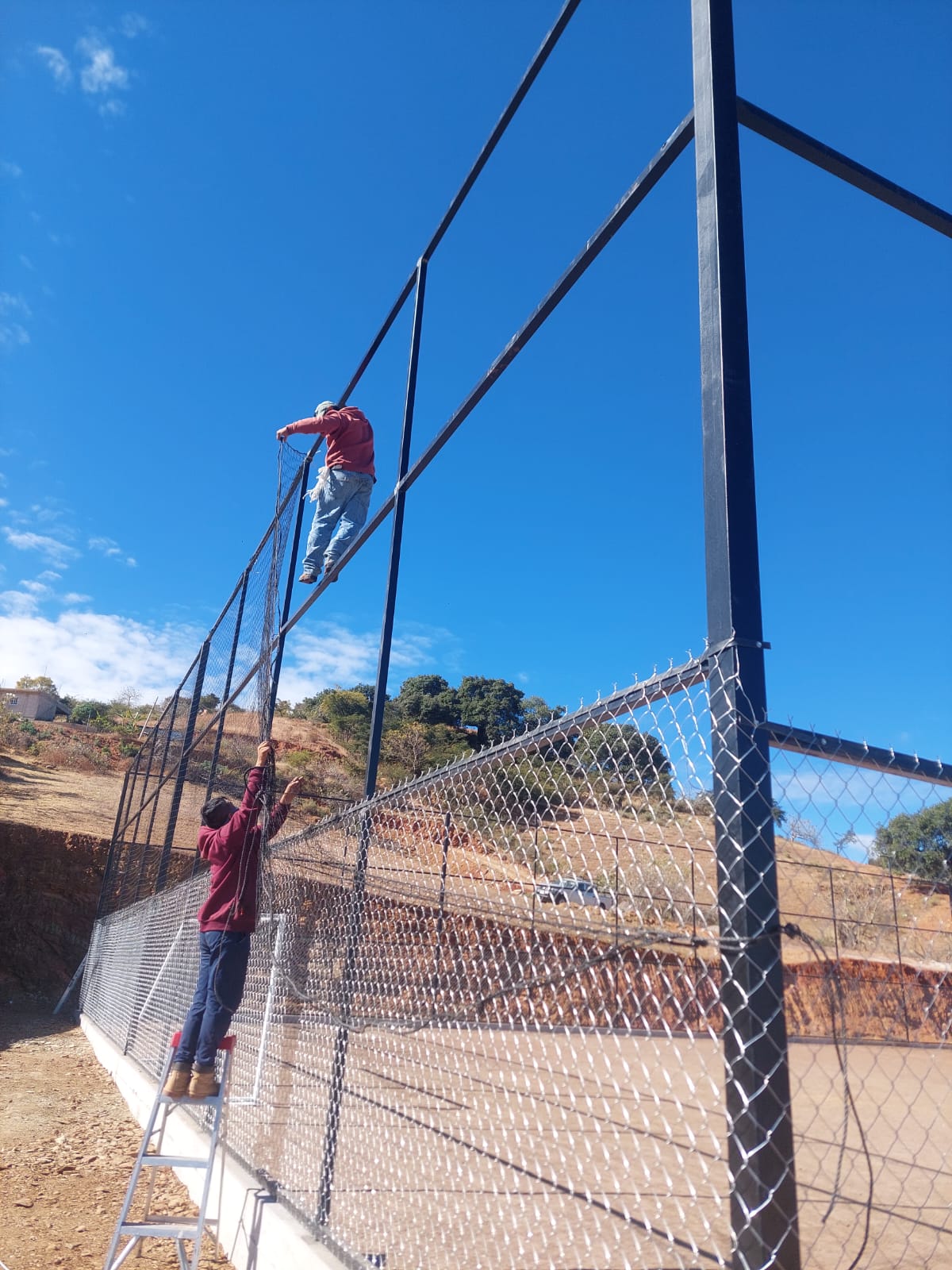 TRAZO Y NIVELACIÓN DE 1,426 M2 PARA ESTABLECER EJES, BANCO DE NIVEL Y REFERENCIAS DE PLATAFORMA; CORTE DE 684.11 M3 DE TERRENO CON MAQUINARIA Y FORMACIÓN DE 611.65 M3 DE TERRAPLÉN CON MATERIAL PRODUCTO DEL CORTE, COMPACTADO CON MAQUINARIA; CONSTRUCCIÓN DE 40 DADOS DE CONCRETO ARMADO PARA CIMENTACIÓN DE ESTRUCTURA METÁLICA Y CONSTRUCCIÓN DE 128.80 ML DE CADENA DE FRONTERA, A BASE DE CONCRETO DE F'C= 250 KG/CM2 Y ACERO DEL #3 Y EST DEL #2; SUMINISTRO Y COLOCACIÓN DE CERCO DE HERRERÍA PARA DELIMITACIÓN DE CANCHA DE FUTBOL, A BASE DE PERFILES PTR DE 4"X4" Y 2"X 2"; SUMINISTRO E INSTALACIÓN DE PUERTA DE MALLA CICLÓNICA DE 0.90 M DE ANCHO POR 2.00M DE ALTURA; SUMINISTRO Y COLOCACIÓN DE 128 ML DE MALLA CICLÓNICA DE 2.00 M. DE ALTURA; SUMINISTRO Y COLOCACIÓN DE 2 PORTERÍAS METÁLICA A BASE DE TUBO CED 30 DE 2" Y 3"; SUMINISTRO Y COLOCACIÓN DE 384 M2 DE RED PERIMETRAL DE 3 PULGADAS DE NYLON ALQUITRANADA; Y SUMINISTRO E INSTALACIÓN DE 960 M2 DE PASTO SINTÉTICO TERZA. INCLUYE MANO DE OBRA EN INSTALACIÓN DE PASTO, ARENA SÍLICA, CAUCHO GRANULADO.