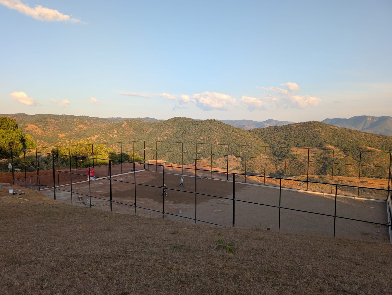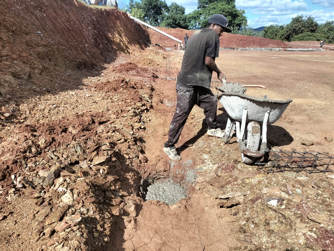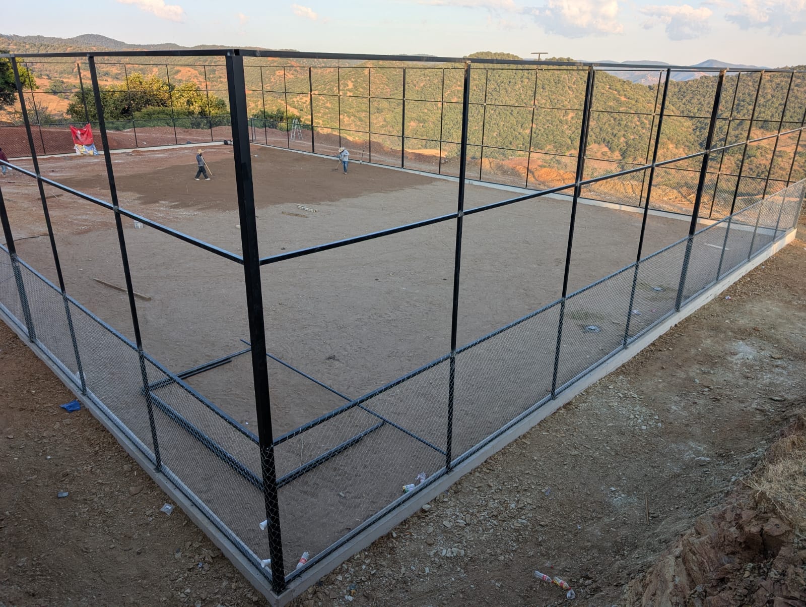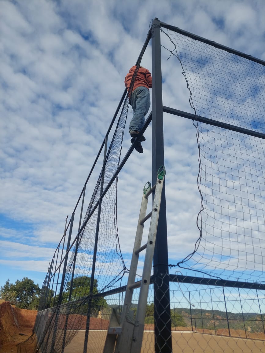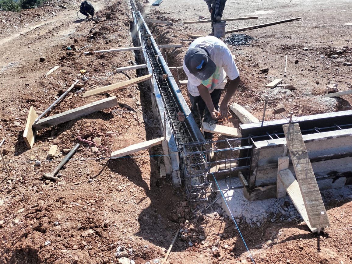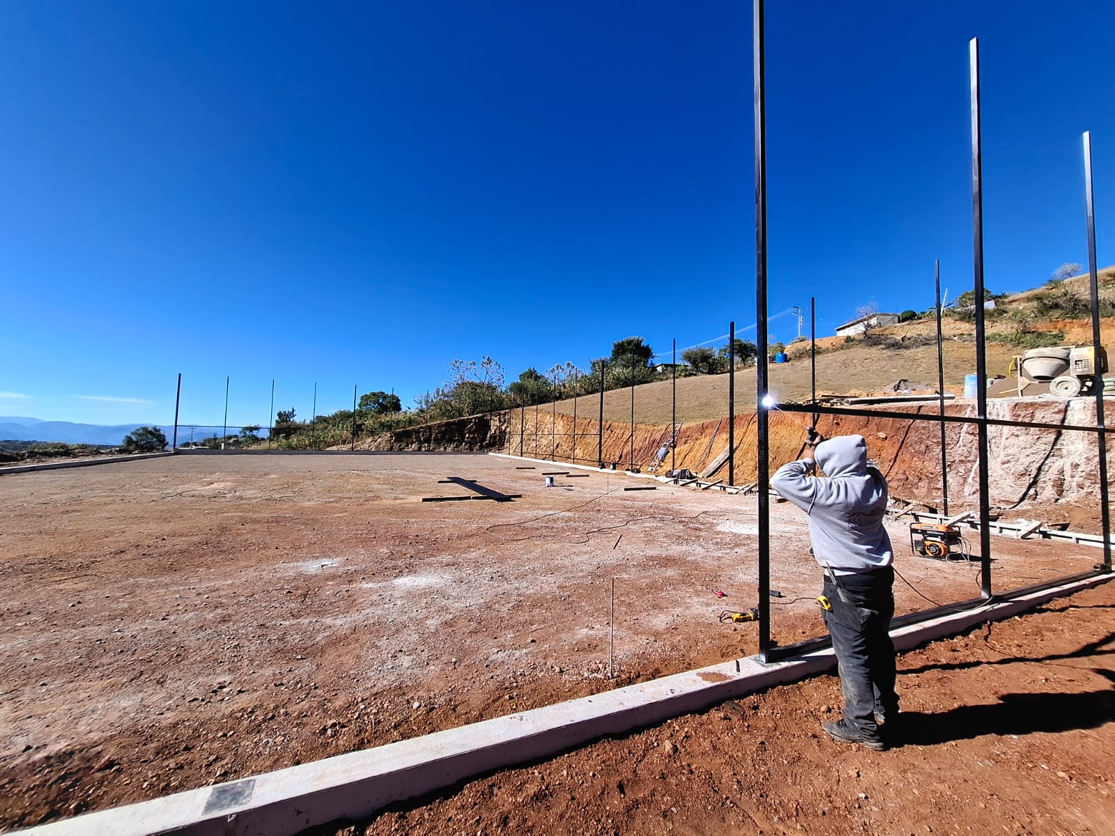 TRAZO Y NIVELACIÓN DE 1,426 M2 PARA ESTABLECER EJES, BANCO DE NIVEL Y REFERENCIAS DE PLATAFORMA; CORTE DE 684.11 M3 DE TERRENO CON MAQUINARIA Y FORMACIÓN DE 611.65 M3 DE TERRAPLÉN CON MATERIAL PRODUCTO DEL CORTE, COMPACTADO CON MAQUINARIA; CONSTRUCCIÓN DE 40 DADOS DE CONCRETO ARMADO PARA CIMENTACIÓN DE ESTRUCTURA METÁLICA Y CONSTRUCCIÓN DE 128.80 ML DE CADENA DE FRONTERA, A BASE DE CONCRETO DE F'C= 250 KG/CM2 Y ACERO DEL #3 Y EST DEL #2; SUMINISTRO Y COLOCACIÓN DE CERCO DE HERRERÍA PARA DELIMITACIÓN DE CANCHA DE FUTBOL, A BASE DE PERFILES PTR DE 4"X4" Y 2"X 2"; SUMINISTRO E INSTALACIÓN DE PUERTA DE MALLA CICLÓNICA DE 0.90 M DE ANCHO POR 2.00M DE ALTURA; SUMINISTRO Y COLOCACIÓN DE 128 ML DE MALLA CICLÓNICA DE 2.00 M. DE ALTURA; SUMINISTRO Y COLOCACIÓN DE 2 PORTERÍAS METÁLICA A BASE DE TUBO CED 30 DE 2" Y 3"; SUMINISTRO Y COLOCACIÓN DE 384 M2 DE RED PERIMETRAL DE 3 PULGADAS DE NYLON ALQUITRANADA; Y SUMINISTRO E INSTALACIÓN DE 960 M2 DE PASTO SINTÉTICO TERZA. INCLUYE MANO DE OBRA EN INSTALACIÓN DE PASTO, ARENA SÍLICA, CAUCHO GRANULADO.