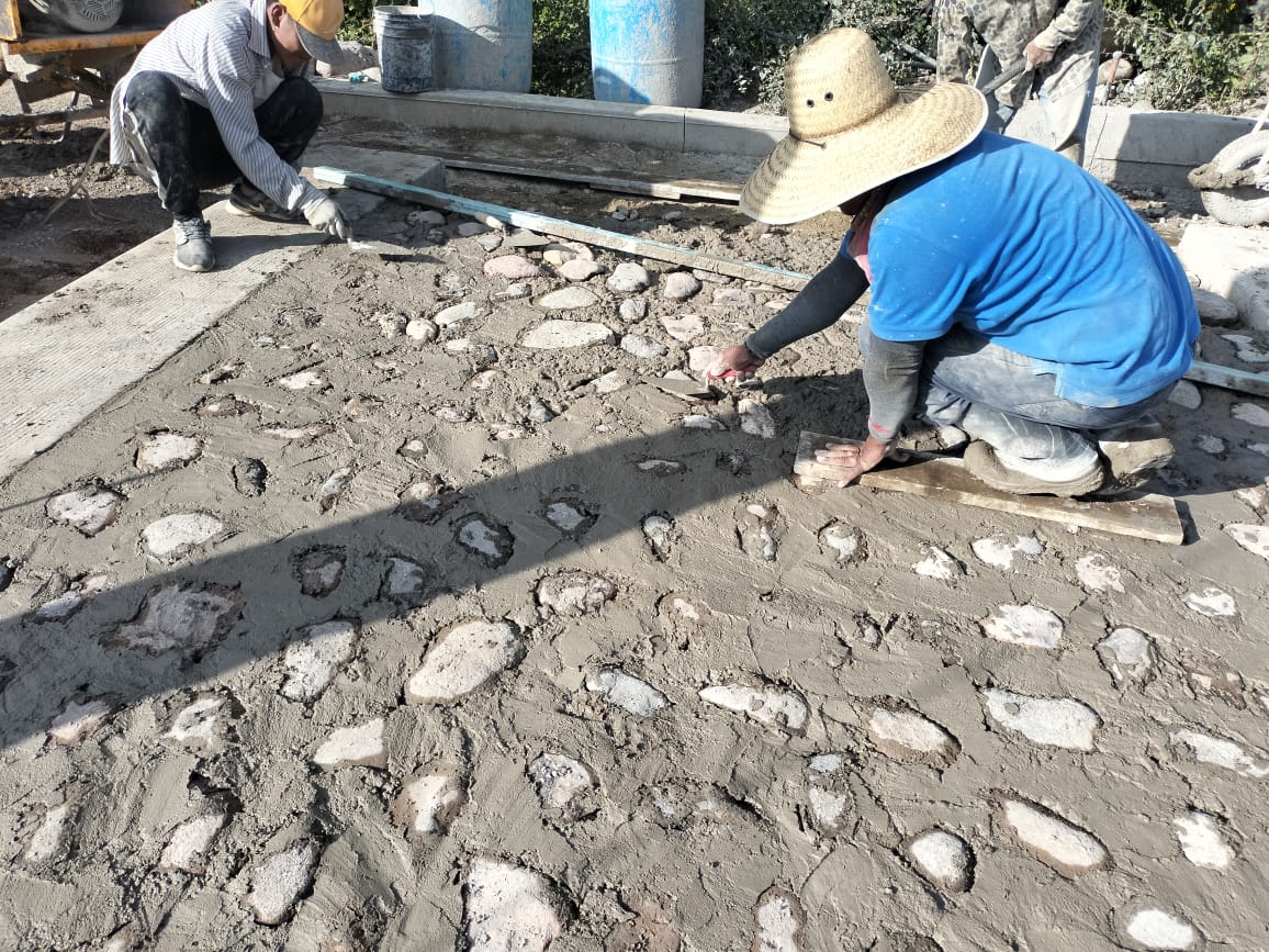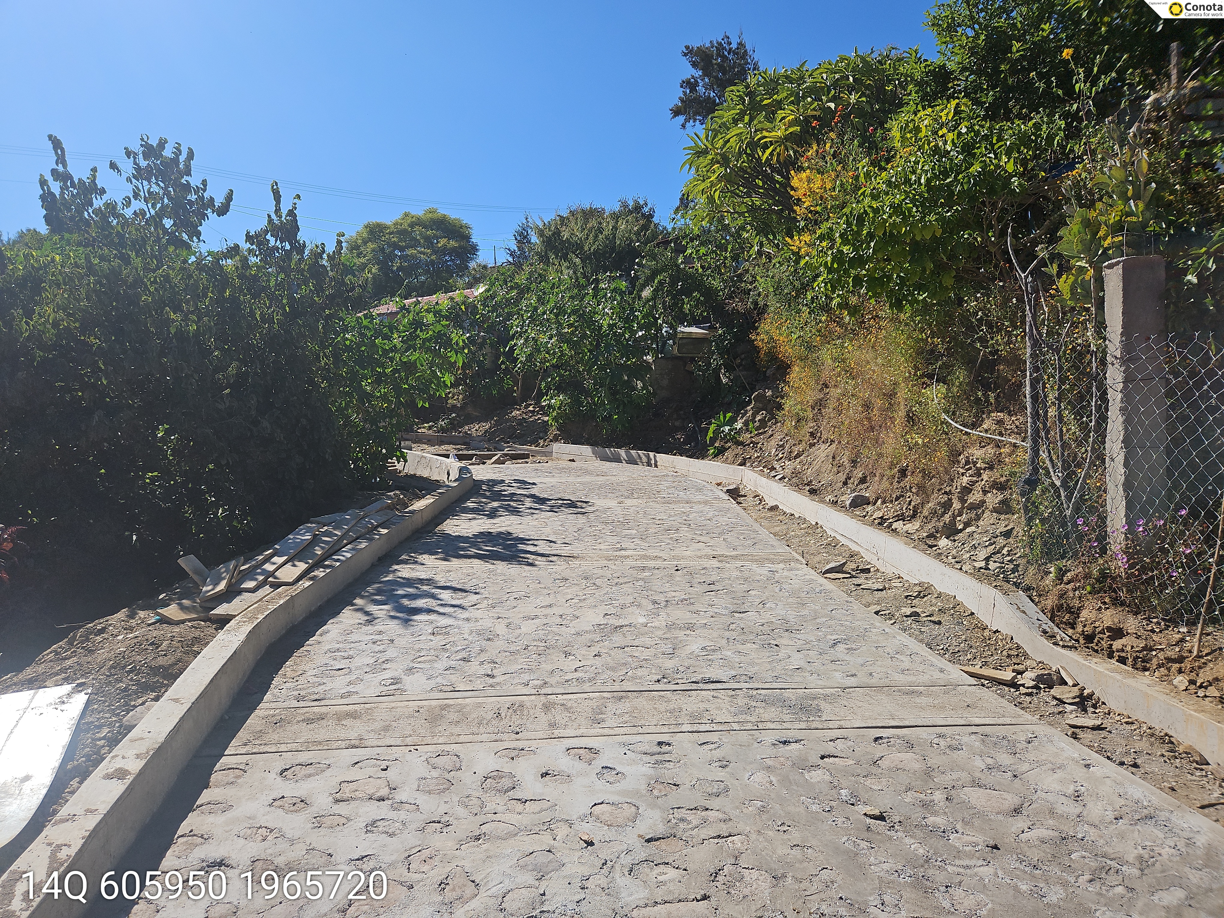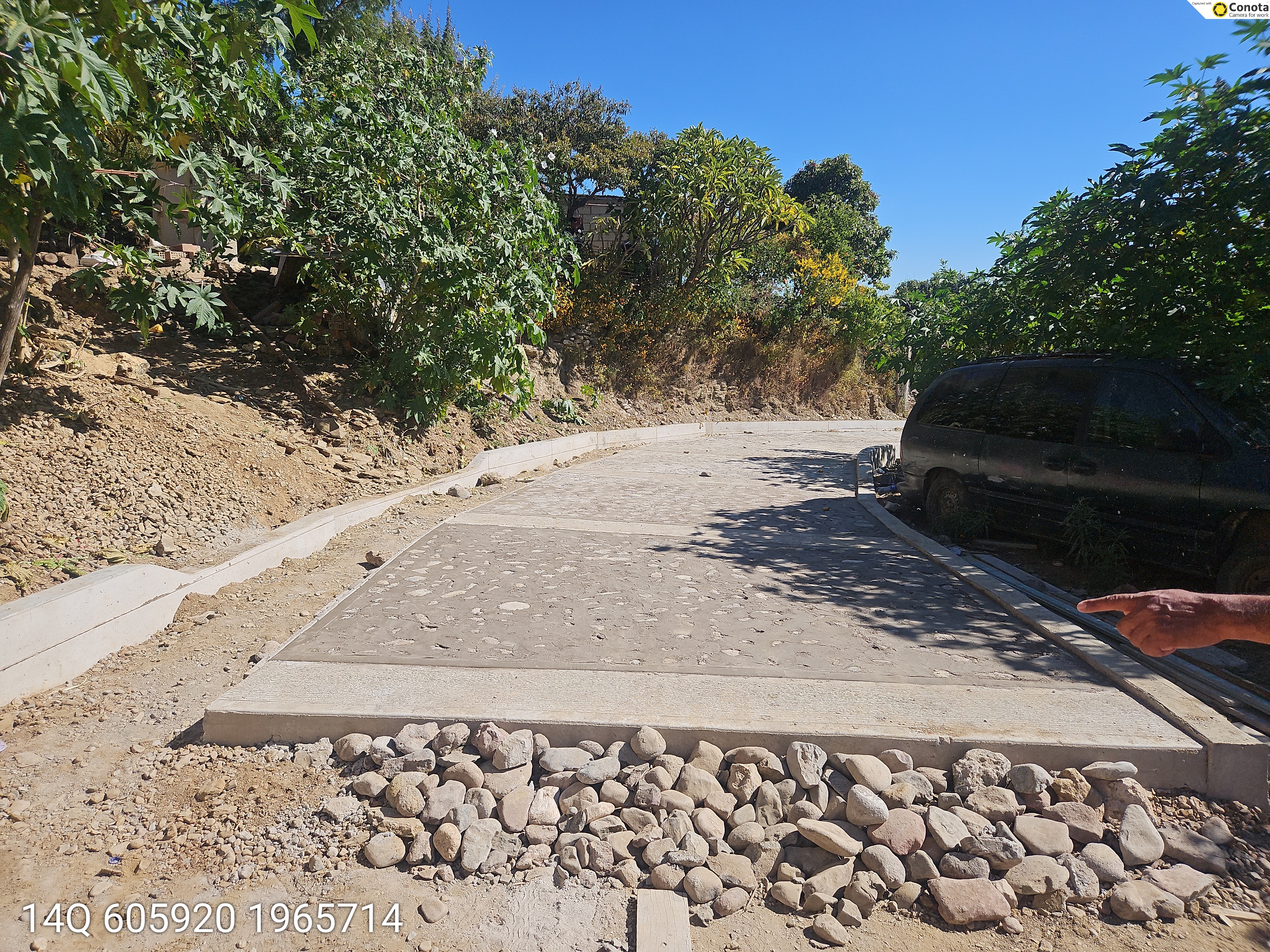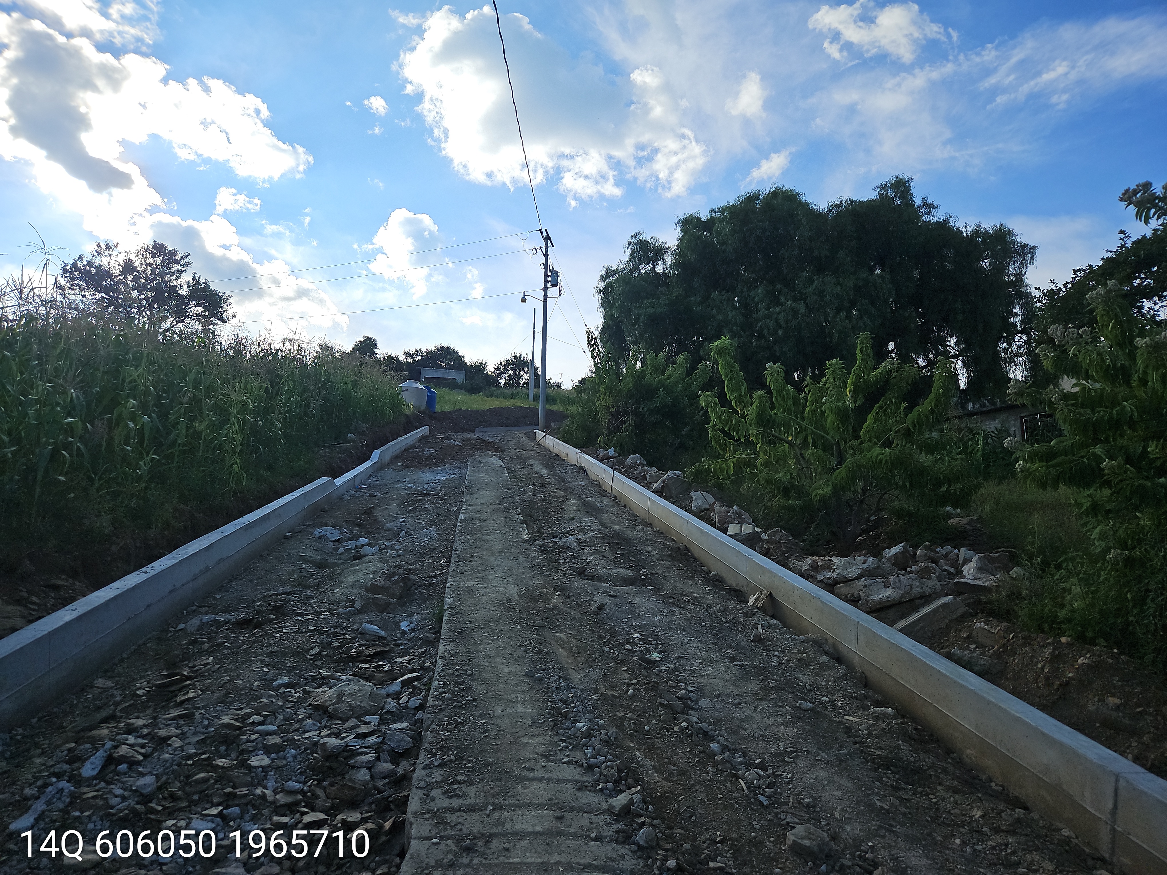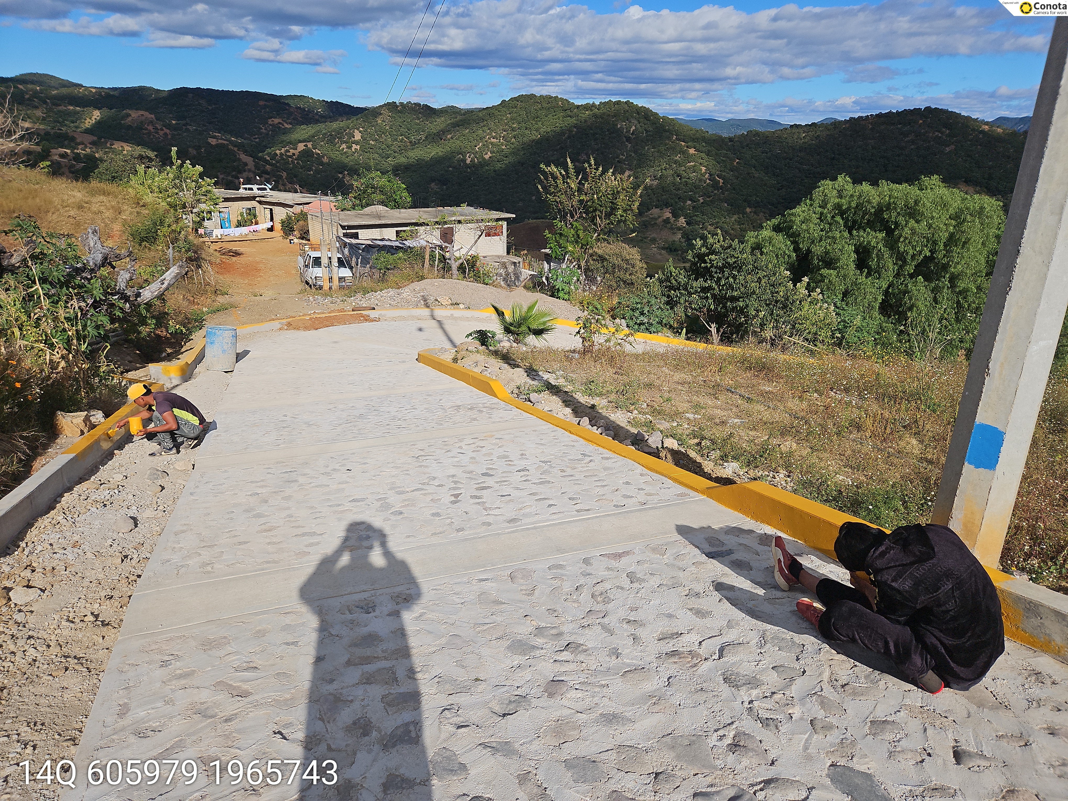TRAZO Y NIVELACIÓN MANUAL PARA ESTABLECER EJES, EXCAVACIÓN DE 33.75 M3 EN MATERIAL TIPO B EN CORTES EN TERRENO NATURAL PARA DESPALME DE TERRENO, CONSTRUCCIÓN DE 387.55 ML DE GUARNICIÓN DE 20X15X40 CM EN CONCRETO DE F´C=150 KG/CM2; CONSTRUCCIÓN DE 100.90 M2 DE PAVIMENTO DE CONCRETO HIDRÁULICO DE 15 CMS. DE ESPESOR CON CONCRETO F´C=200 KG/CM2 Y MALLA 6,6-10,10 PARA CINTURONES DE CONCRETO DE 0.50 M DE ANCHO A CADA 3.00 M Y CONSTRUCCIÓN 567.13 M2 DE EMPEDRADO A BASE DE PIEDRA BOLA DE RIO Y CONCRETO F´C=200KG/CM2 (60% PIEDRA 40% CONCRETO) ; SUMINISTRO Y APLICACIÓN DE 387.55 ML DE PINTURA DE COLOR AMARILLO TIPO TRAFICO PESADO DE BASE SOLVENTE EN GUARNICIONES; LIMPIEZA DE OBRA Y SUMINISTRO Y COLOCACIÓN DE LETRERO INFORMATIVO DE OBRA DE 1.20M X 0.90M A BASE DE PERFIL METÁLICO DE TUBULAR 2X2 Y LAMINA METÁLICA CON VINIL.