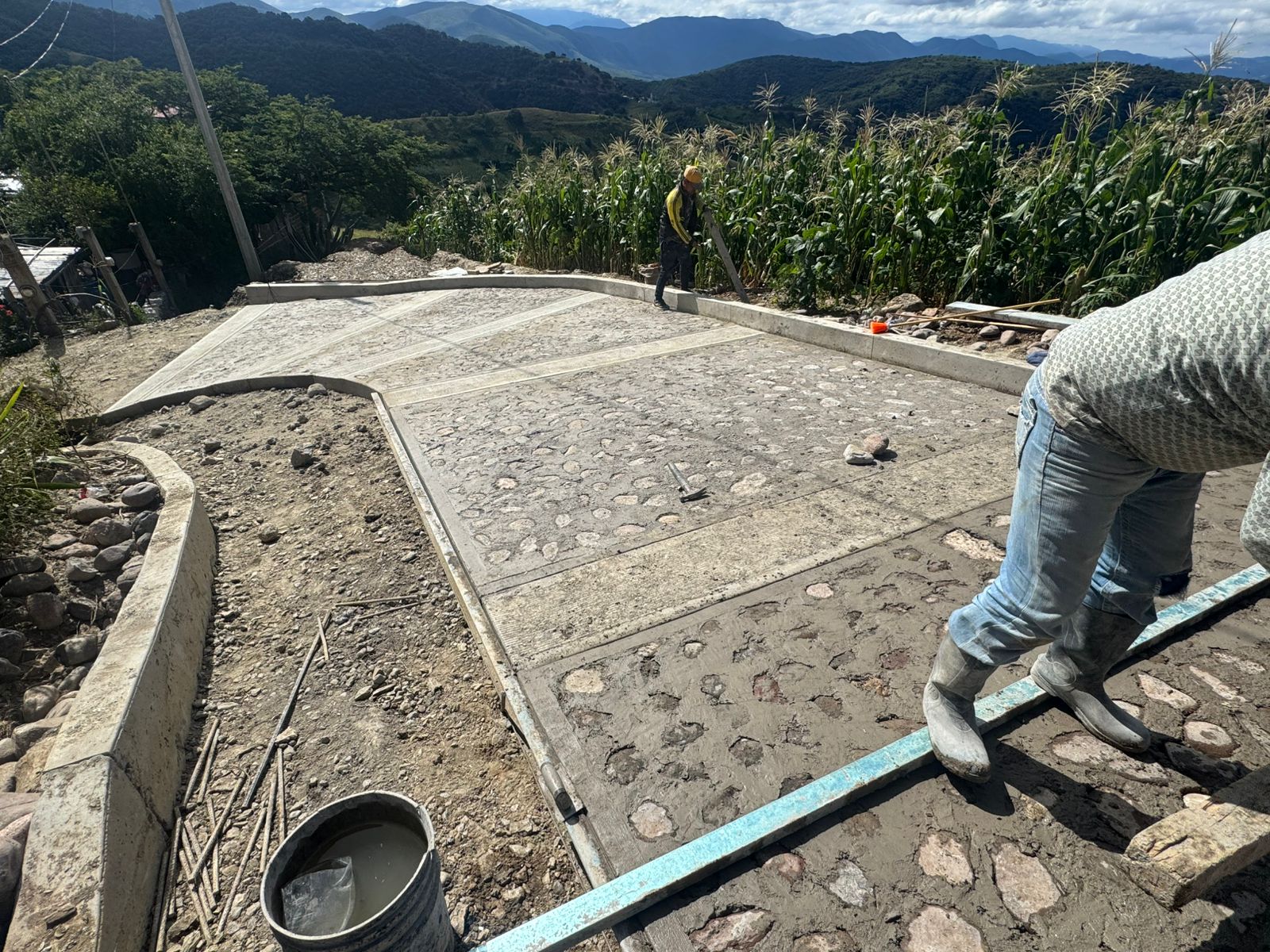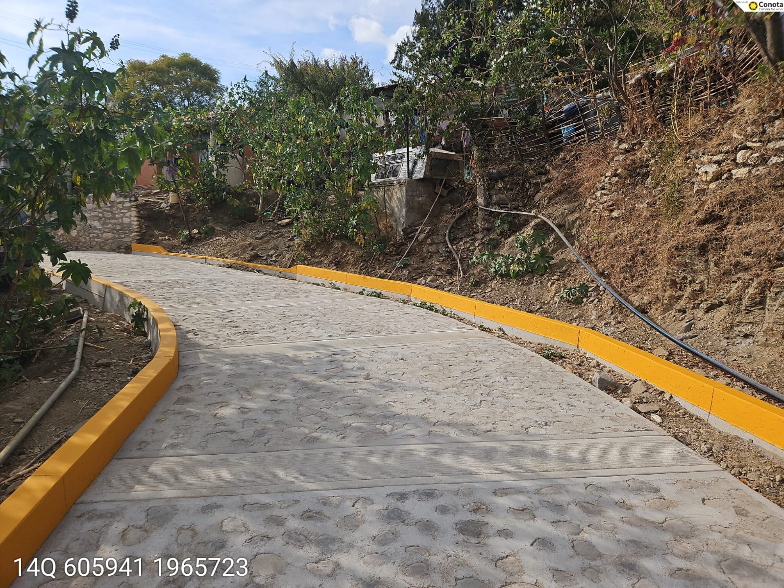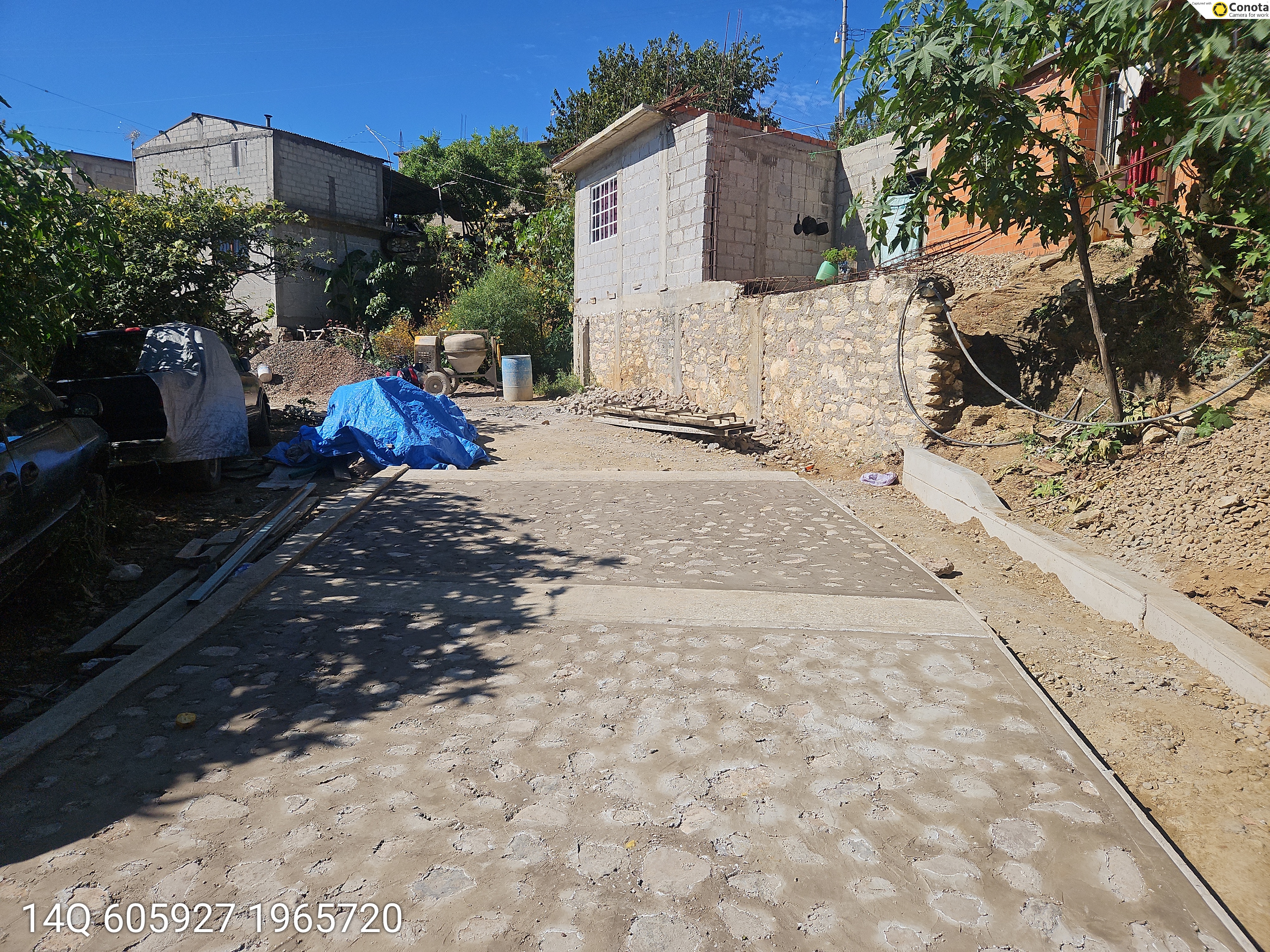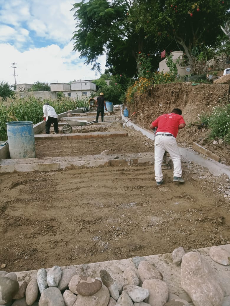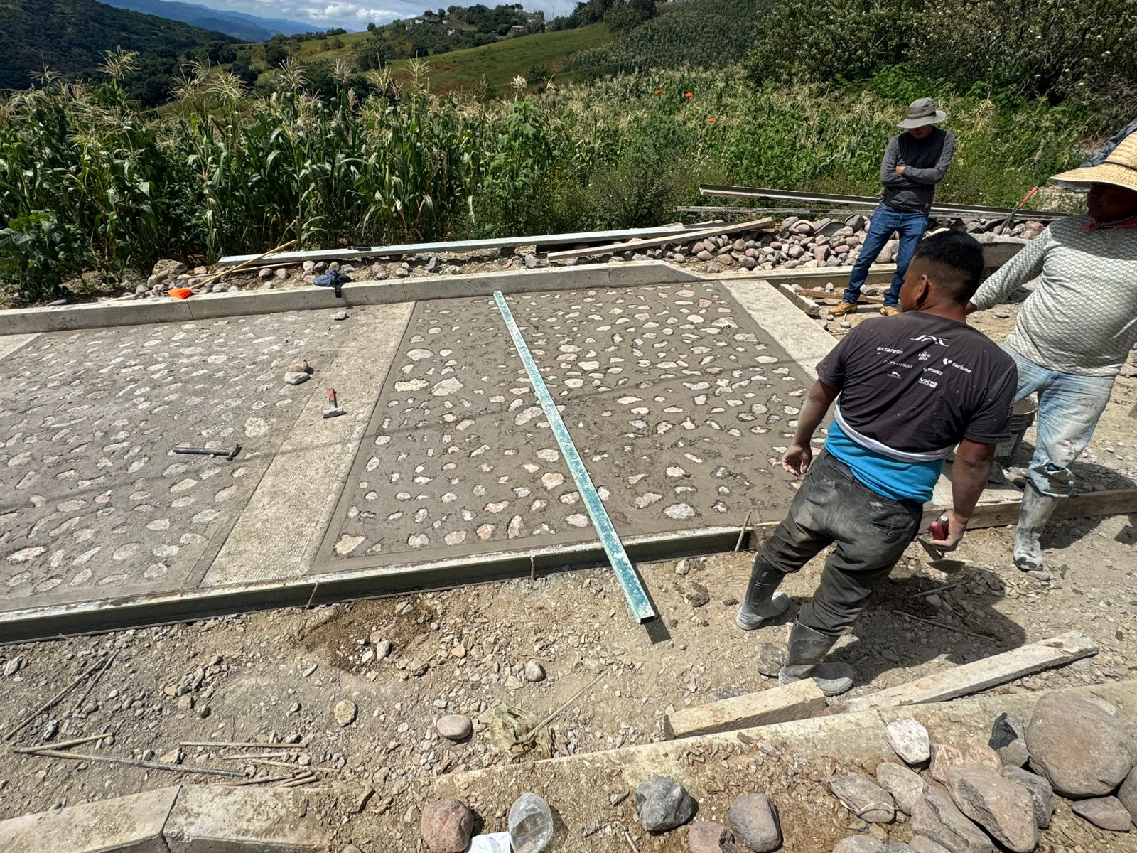 TRAZO Y NIVELACIÓN MANUAL PARA ESTABLECER EJES, EXCAVACIÓN DE 33.75 M3 EN MATERIAL TIPO B EN CORTES EN TERRENO NATURAL PARA DESPALME DE TERRENO, CONSTRUCCIÓN DE 387.55 ML DE GUARNICIÓN DE 20X15X40 CM EN CONCRETO DE F´C=150 KG/CM2; CONSTRUCCIÓN DE 100.90 M2 DE PAVIMENTO DE CONCRETO HIDRÁULICO DE 15 CMS. DE ESPESOR CON CONCRETO F´C=200 KG/CM2 Y MALLA 6,6-10,10 PARA CINTURONES DE CONCRETO DE 0.50 M DE ANCHO A CADA 3.00 M Y CONSTRUCCIÓN 567.13 M2 DE EMPEDRADO A BASE DE PIEDRA BOLA DE RIO Y CONCRETO F´C=200KG/CM2 (60% PIEDRA 40% CONCRETO) ; SUMINISTRO Y APLICACIÓN DE 387.55 ML DE PINTURA DE COLOR AMARILLO TIPO TRAFICO PESADO DE BASE SOLVENTE EN GUARNICIONES; LIMPIEZA DE OBRA Y SUMINISTRO Y COLOCACIÓN DE LETRERO INFORMATIVO DE OBRA DE 1.20M X 0.90M A BASE DE PERFIL METÁLICO DE TUBULAR 2X2 Y LAMINA METÁLICA CON VINIL.