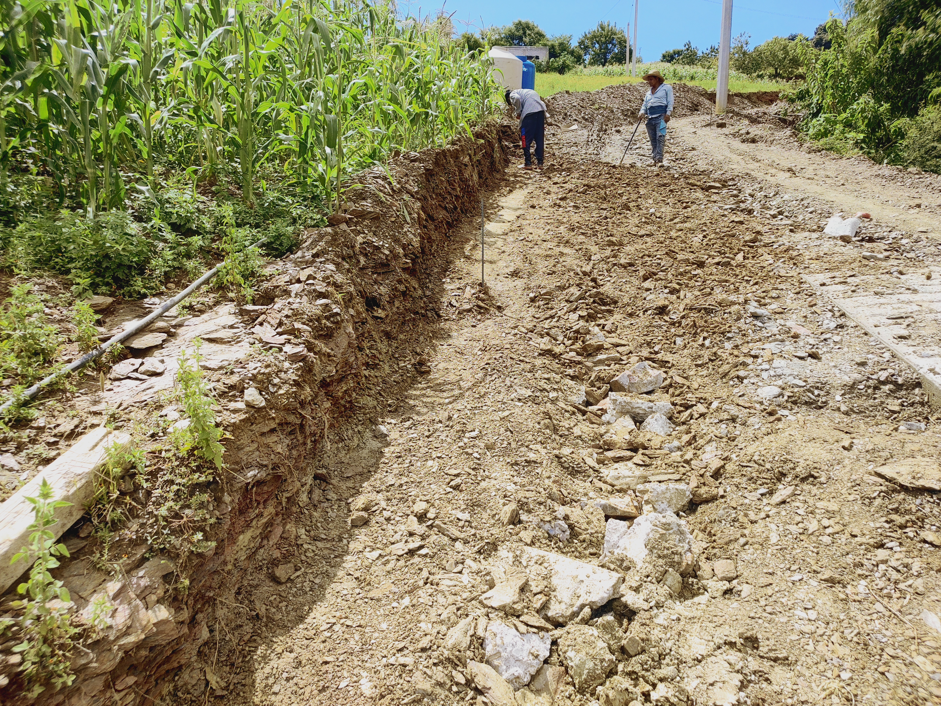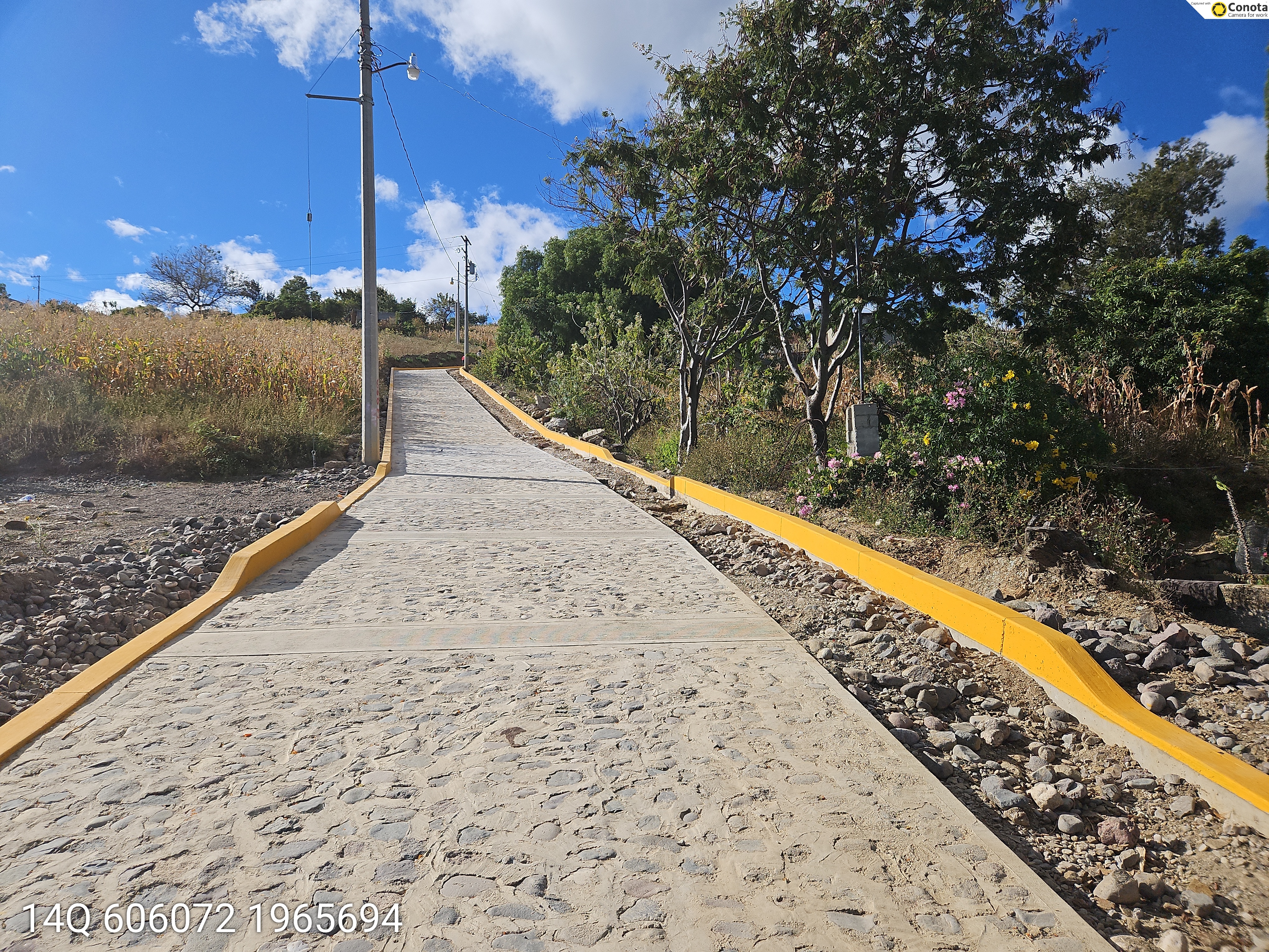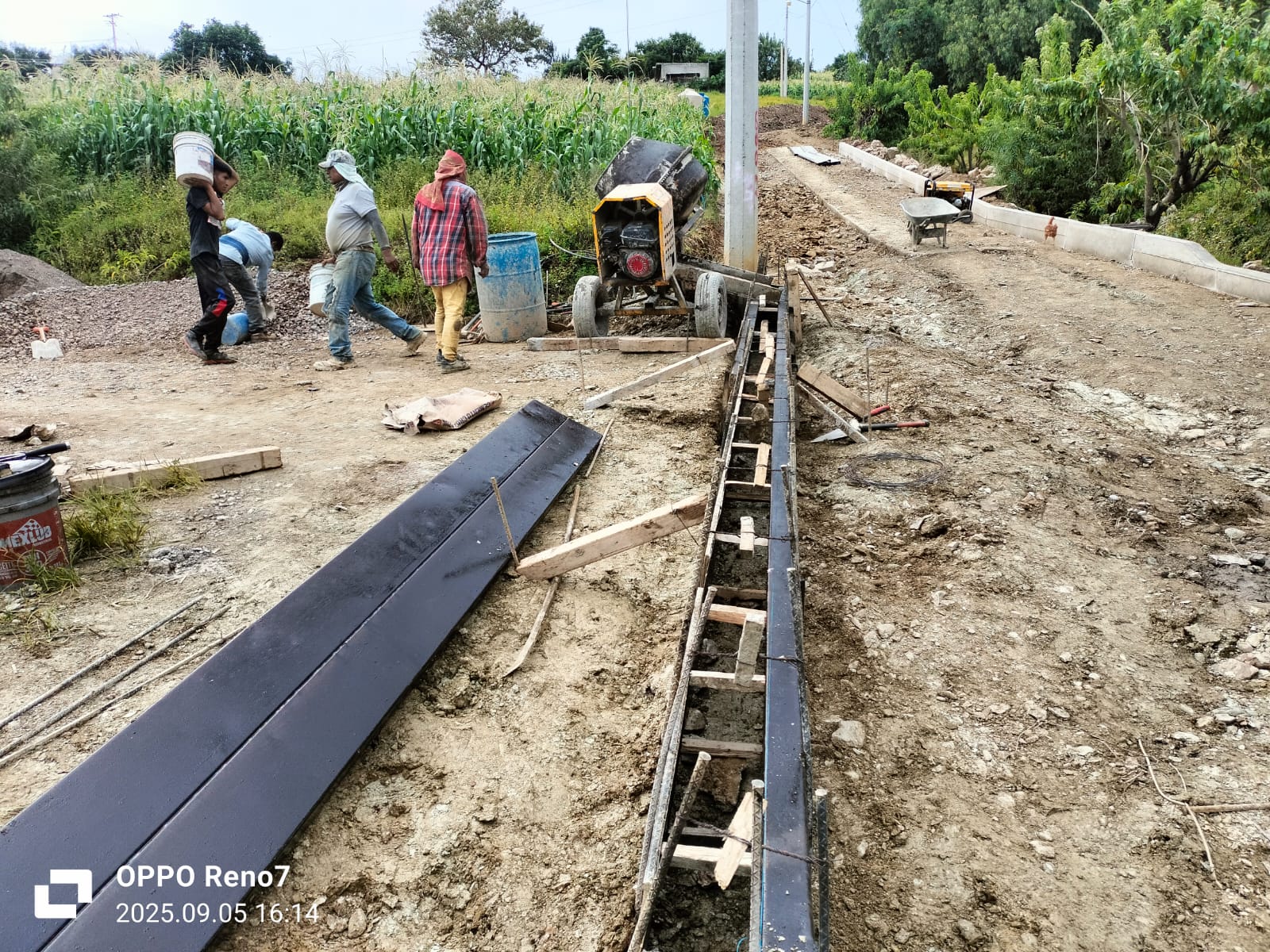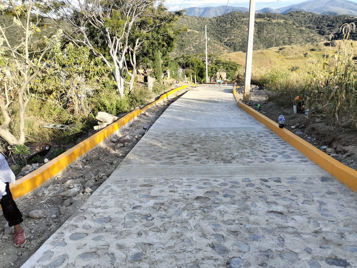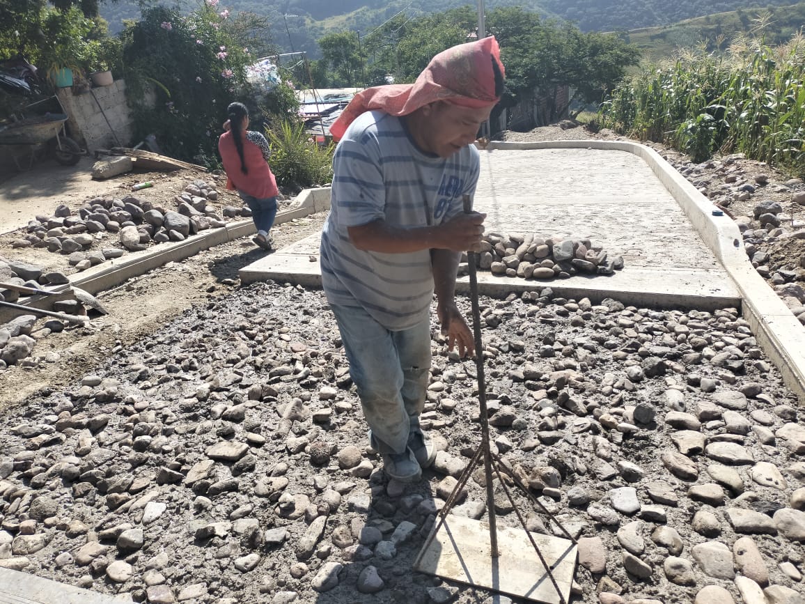TRAZO Y NIVELACIÓN MANUAL PARA ESTABLECER EJES, EXCAVACIÓN DE 33.75 M3 EN MATERIAL TIPO B EN CORTES EN TERRENO NATURAL PARA DESPALME DE TERRENO, CONSTRUCCIÓN DE 387.55 ML DE GUARNICIÓN DE 20X15X40 CM EN CONCRETO DE F´C=150 KG/CM2; CONSTRUCCIÓN DE 100.90 M2 DE PAVIMENTO DE CONCRETO HIDRÁULICO DE 15 CMS. DE ESPESOR CON CONCRETO F´C=200 KG/CM2 Y MALLA 6,6-10,10 PARA CINTURONES DE CONCRETO DE 0.50 M DE ANCHO A CADA 3.00 M Y CONSTRUCCIÓN 567.13 M2 DE EMPEDRADO A BASE DE PIEDRA BOLA DE RIO Y CONCRETO F´C=200KG/CM2 (60% PIEDRA 40% CONCRETO) ; SUMINISTRO Y APLICACIÓN DE 387.55 ML DE PINTURA DE COLOR AMARILLO TIPO TRAFICO PESADO DE BASE SOLVENTE EN GUARNICIONES; LIMPIEZA DE OBRA Y SUMINISTRO Y COLOCACIÓN DE LETRERO INFORMATIVO DE OBRA DE 1.20M X 0.90M A BASE DE PERFIL METÁLICO DE TUBULAR 2X2 Y LAMINA METÁLICA CON VINIL.