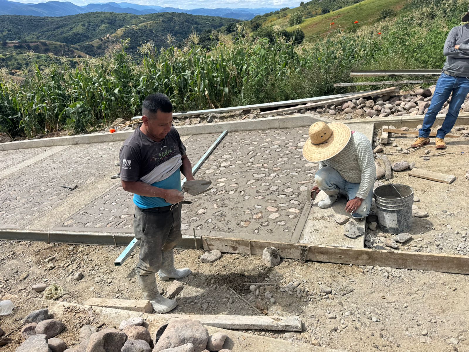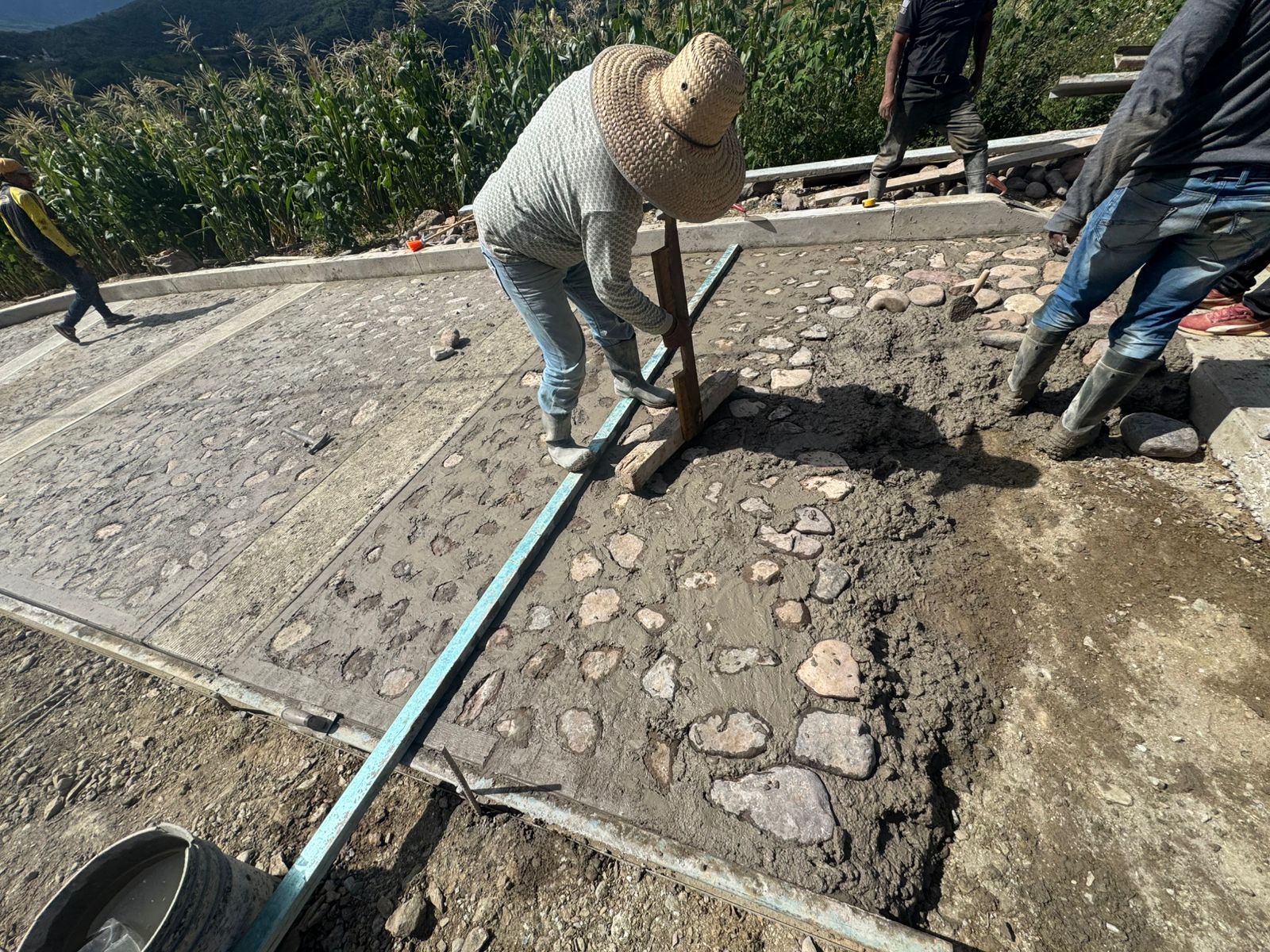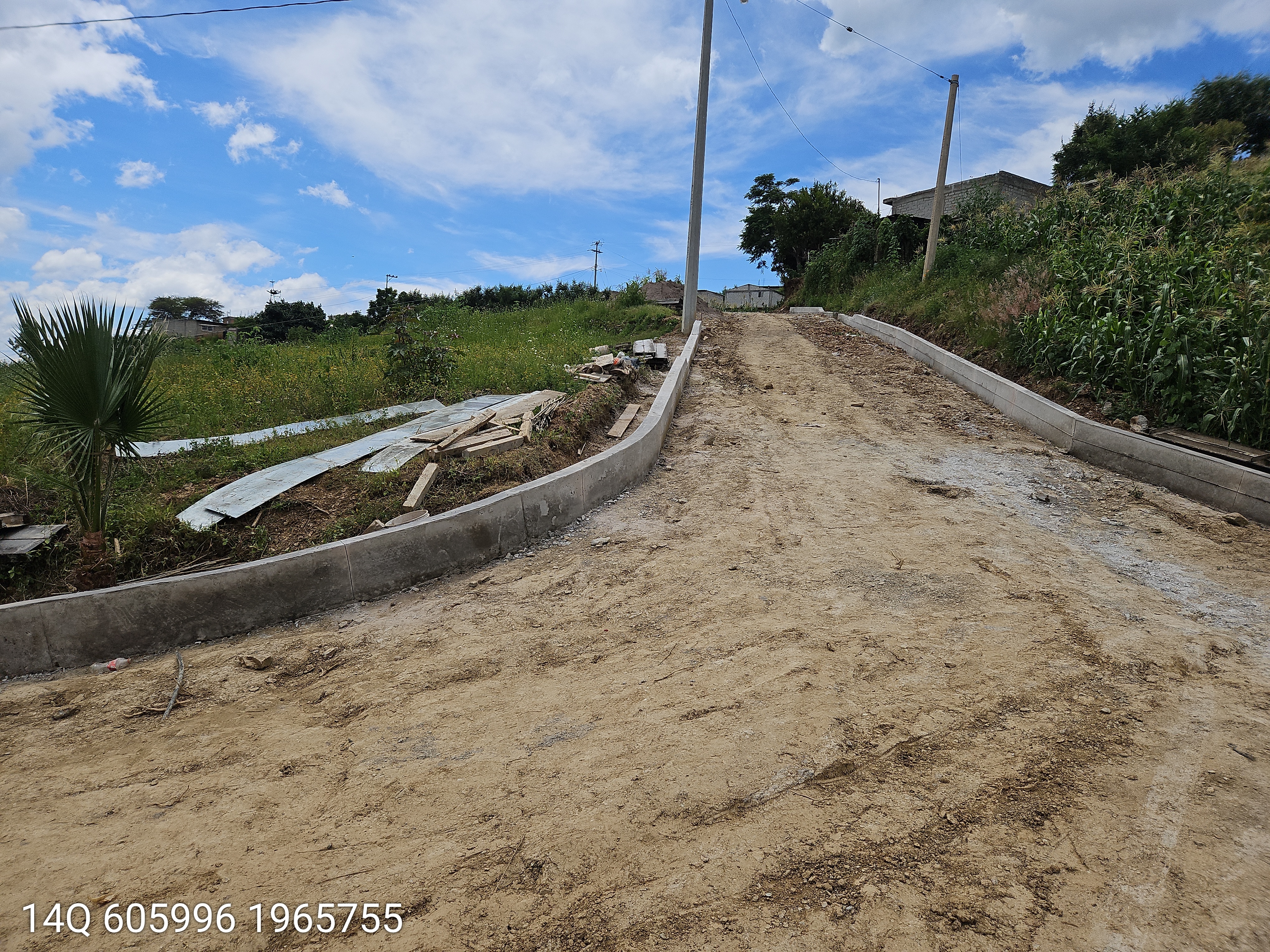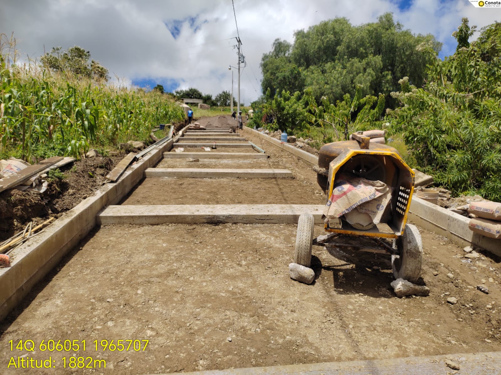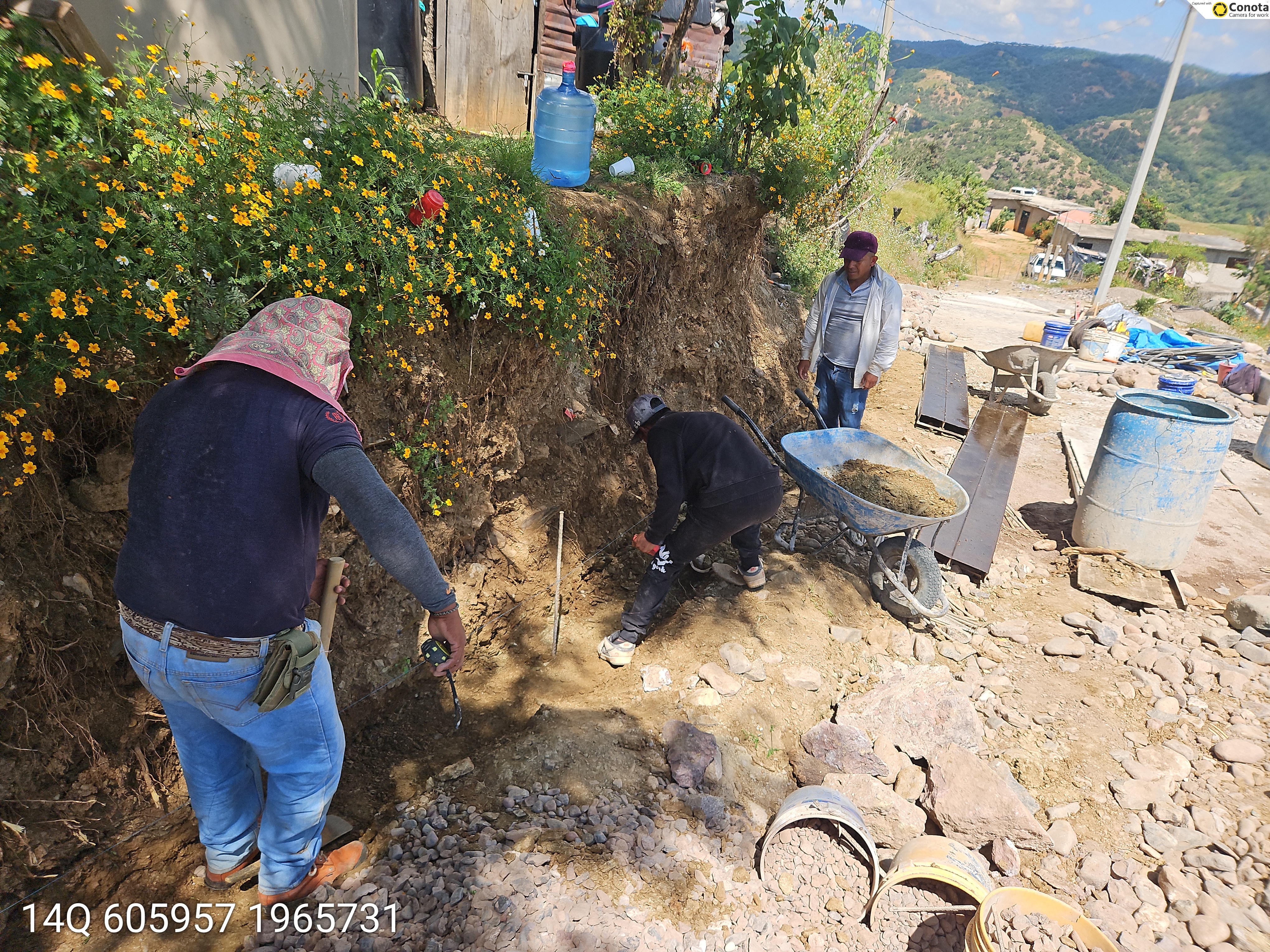 TRAZO Y NIVELACIÓN MANUAL PARA ESTABLECER EJES, EXCAVACIÓN DE 33.75 M3 EN MATERIAL TIPO B EN CORTES EN TERRENO NATURAL PARA DESPALME DE TERRENO, CONSTRUCCIÓN DE 387.55 ML DE GUARNICIÓN DE 20X15X40 CM EN CONCRETO DE F´C=150 KG/CM2; CONSTRUCCIÓN DE 100.90 M2 DE PAVIMENTO DE CONCRETO HIDRÁULICO DE 15 CMS. DE ESPESOR CON CONCRETO F´C=200 KG/CM2 Y MALLA 6,6-10,10 PARA CINTURONES DE CONCRETO DE 0.50 M DE ANCHO A CADA 3.00 M Y CONSTRUCCIÓN 567.13 M2 DE EMPEDRADO A BASE DE PIEDRA BOLA DE RIO Y CONCRETO F´C=200KG/CM2 (60% PIEDRA 40% CONCRETO) ; SUMINISTRO Y APLICACIÓN DE 387.55 ML DE PINTURA DE COLOR AMARILLO TIPO TRAFICO PESADO DE BASE SOLVENTE EN GUARNICIONES; LIMPIEZA DE OBRA Y SUMINISTRO Y COLOCACIÓN DE LETRERO INFORMATIVO DE OBRA DE 1.20M X 0.90M A BASE DE PERFIL METÁLICO DE TUBULAR 2X2 Y LAMINA METÁLICA CON VINIL.