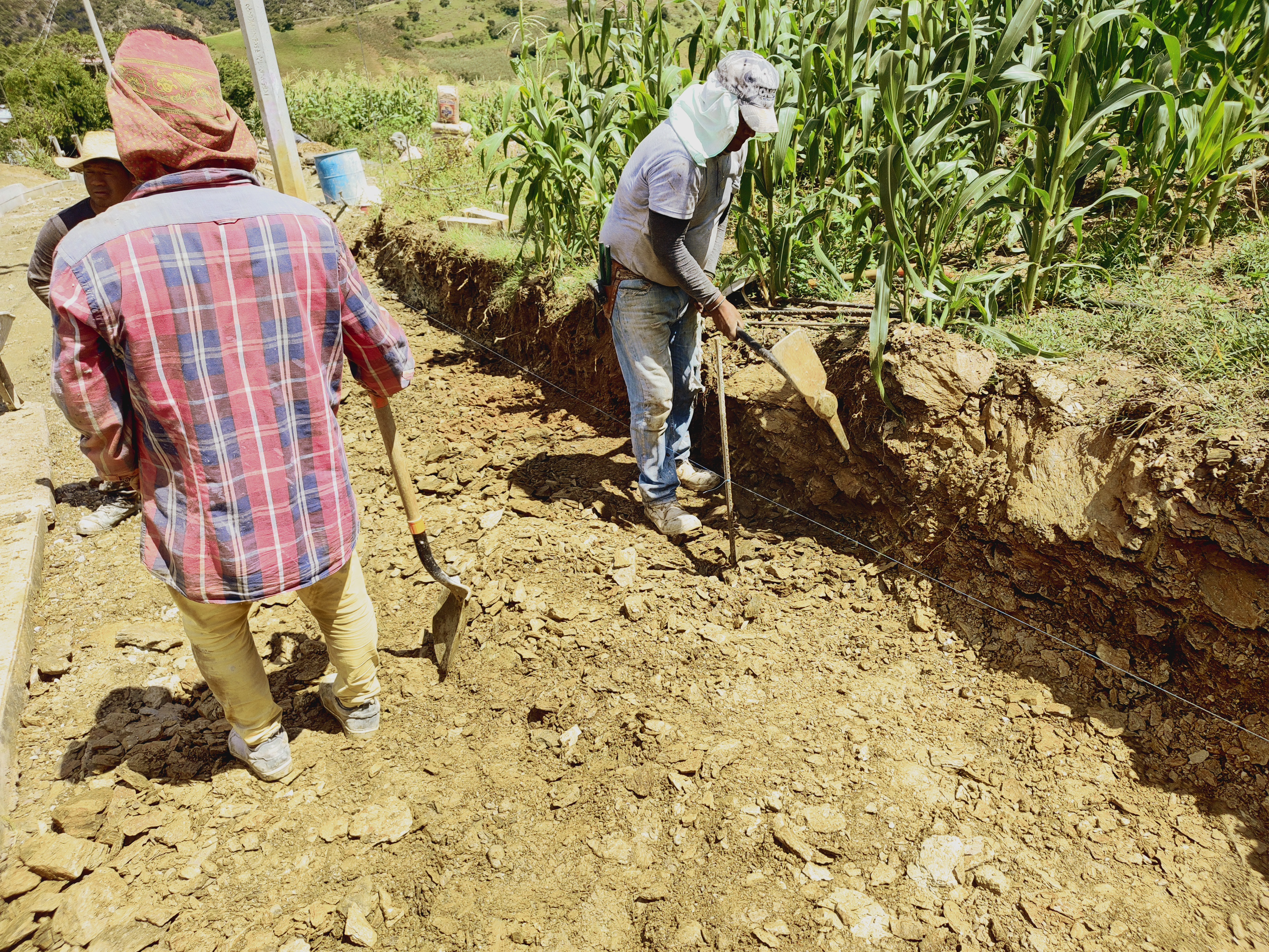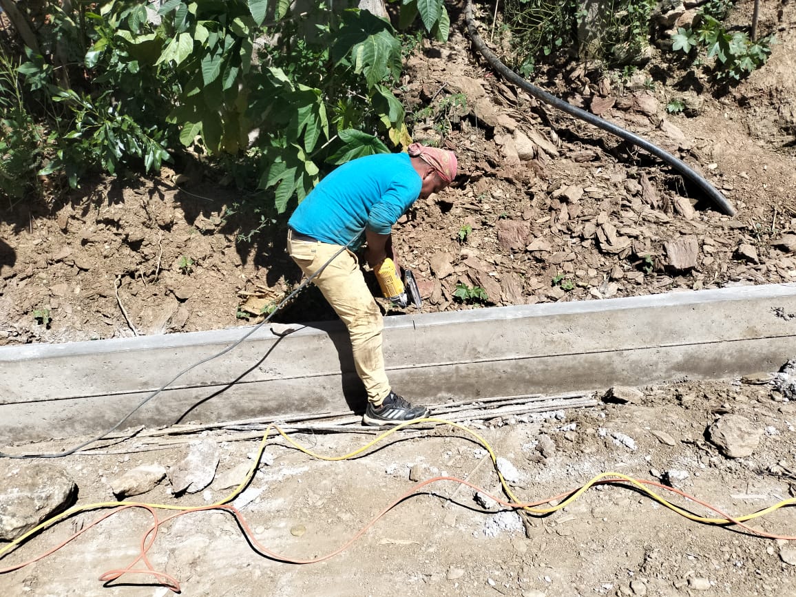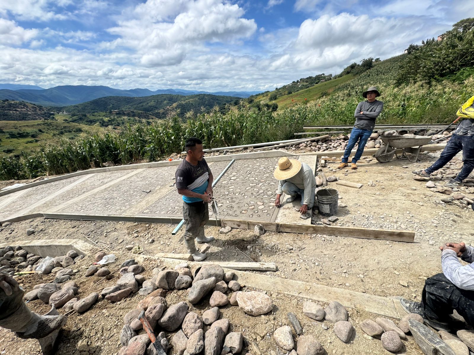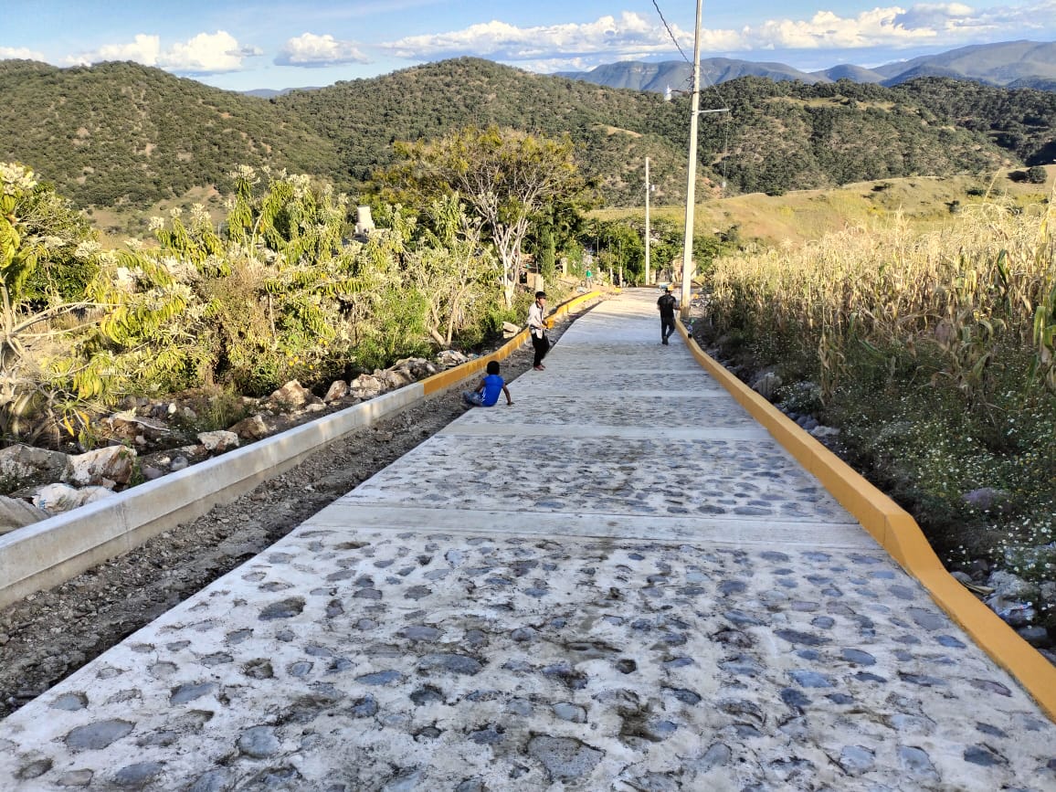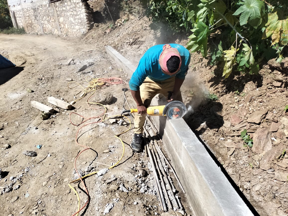 TRAZO Y NIVELACIÓN MANUAL PARA ESTABLECER EJES, EXCAVACIÓN DE 33.75 M3 EN MATERIAL TIPO B EN CORTES EN TERRENO NATURAL PARA DESPALME DE TERRENO, CONSTRUCCIÓN DE 387.55 ML DE GUARNICIÓN DE 20X15X40 CM EN CONCRETO DE F´C=150 KG/CM2; CONSTRUCCIÓN DE 100.90 M2 DE PAVIMENTO DE CONCRETO HIDRÁULICO DE 15 CMS. DE ESPESOR CON CONCRETO F´C=200 KG/CM2 Y MALLA 6,6-10,10 PARA CINTURONES DE CONCRETO DE 0.50 M DE ANCHO A CADA 3.00 M Y CONSTRUCCIÓN 567.13 M2 DE EMPEDRADO A BASE DE PIEDRA BOLA DE RIO Y CONCRETO F´C=200KG/CM2 (60% PIEDRA 40% CONCRETO) ; SUMINISTRO Y APLICACIÓN DE 387.55 ML DE PINTURA DE COLOR AMARILLO TIPO TRAFICO PESADO DE BASE SOLVENTE EN GUARNICIONES; LIMPIEZA DE OBRA Y SUMINISTRO Y COLOCACIÓN DE LETRERO INFORMATIVO DE OBRA DE 1.20M X 0.90M A BASE DE PERFIL METÁLICO DE TUBULAR 2X2 Y LAMINA METÁLICA CON VINIL.